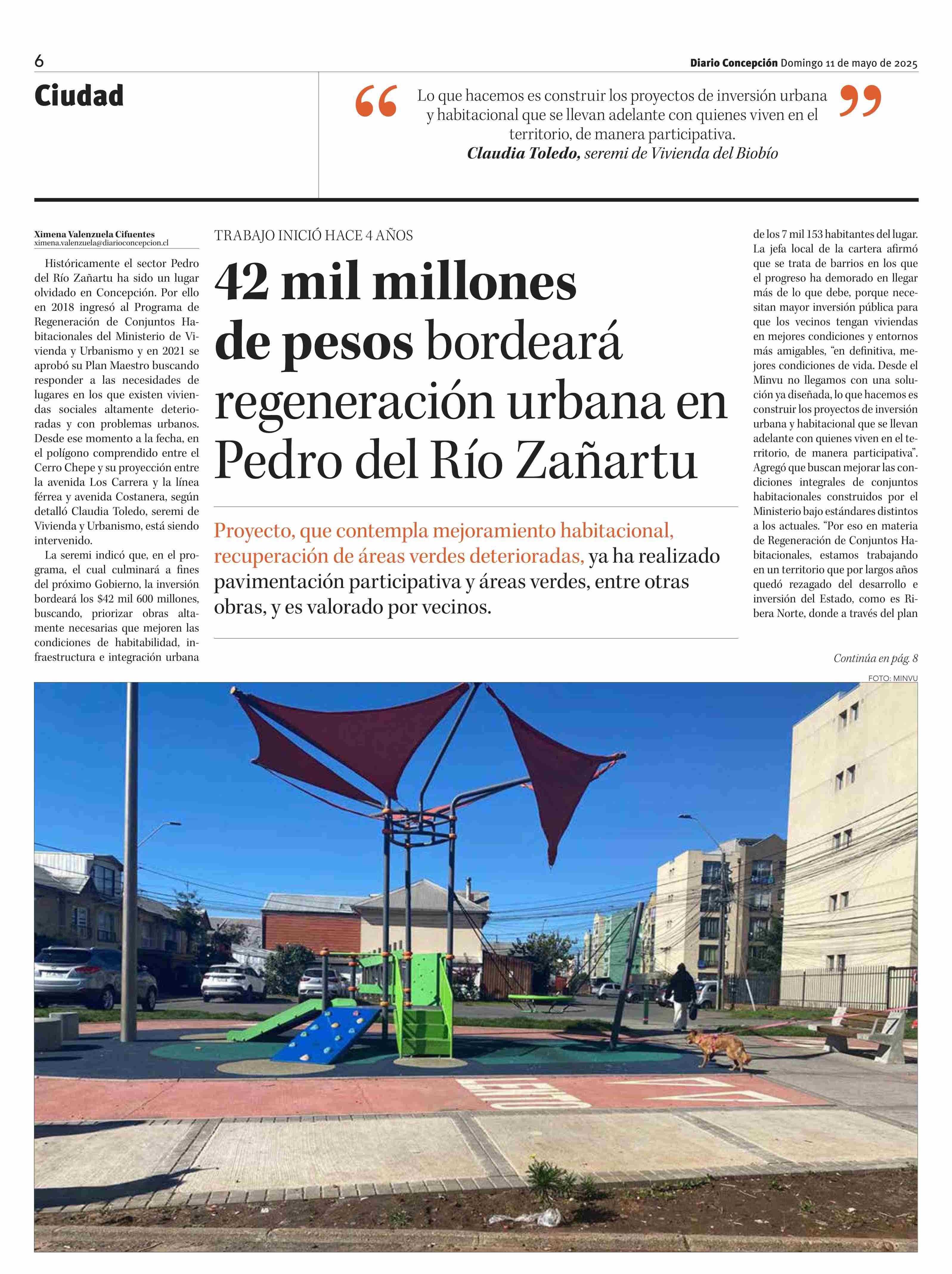 42 mil millones de pesos bordeará regeneración urbana en Pedro del Río Zañartu