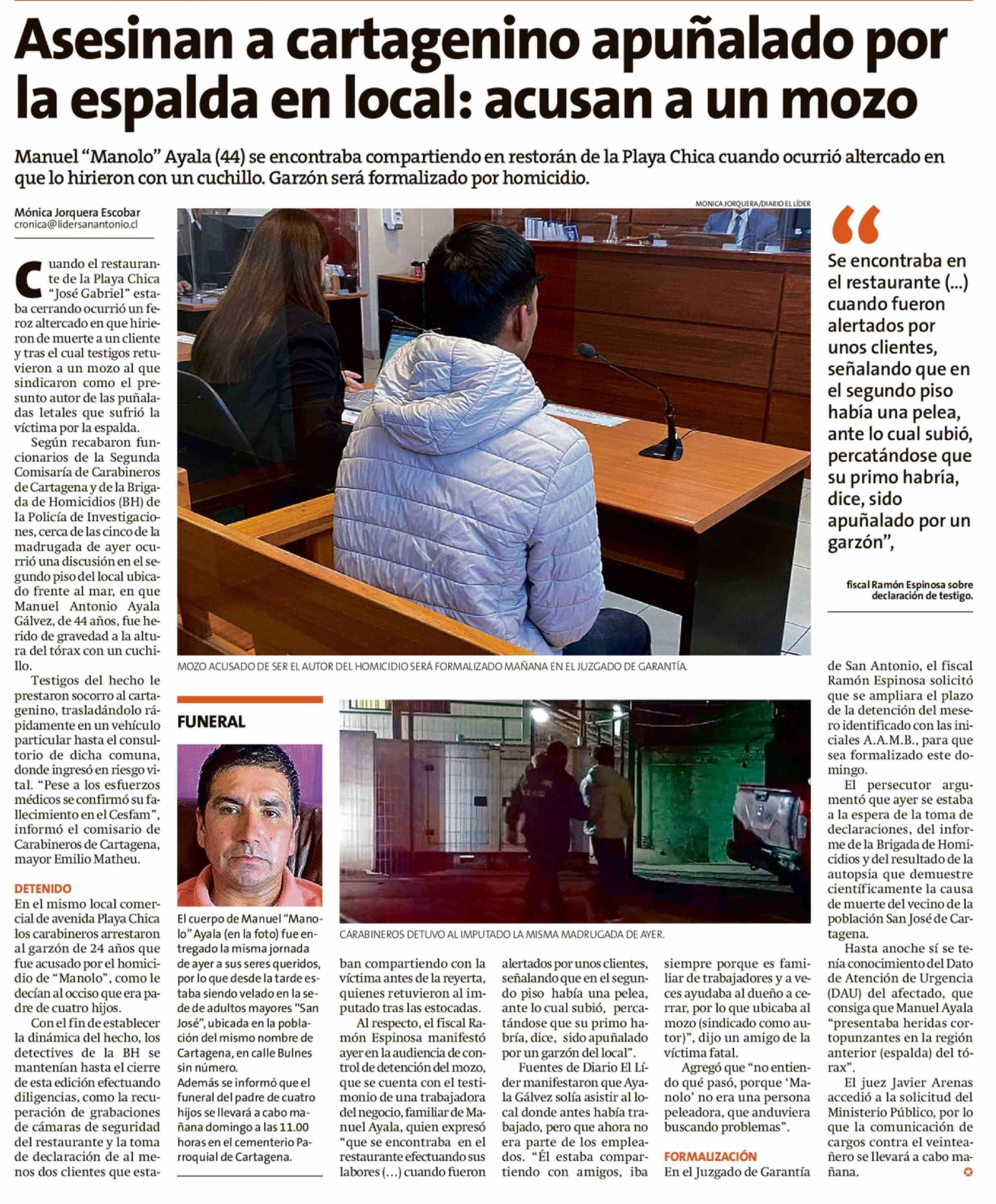 Asesinan a cartagenino apuñalado por la espalda en local: acusan a un mozo