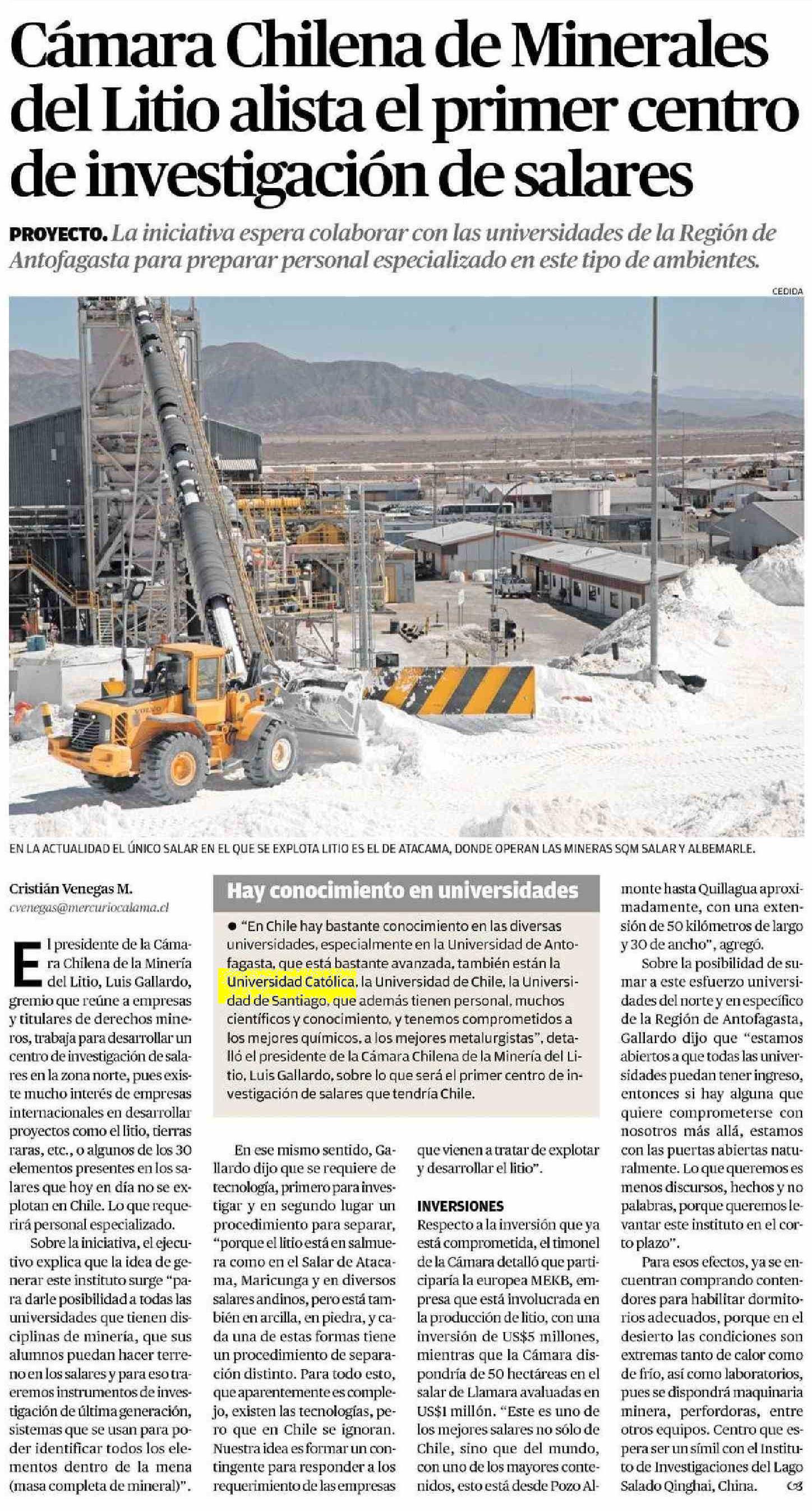 Cámara Chilena de Minerales del Litio alista el primer centro de investigación de salares