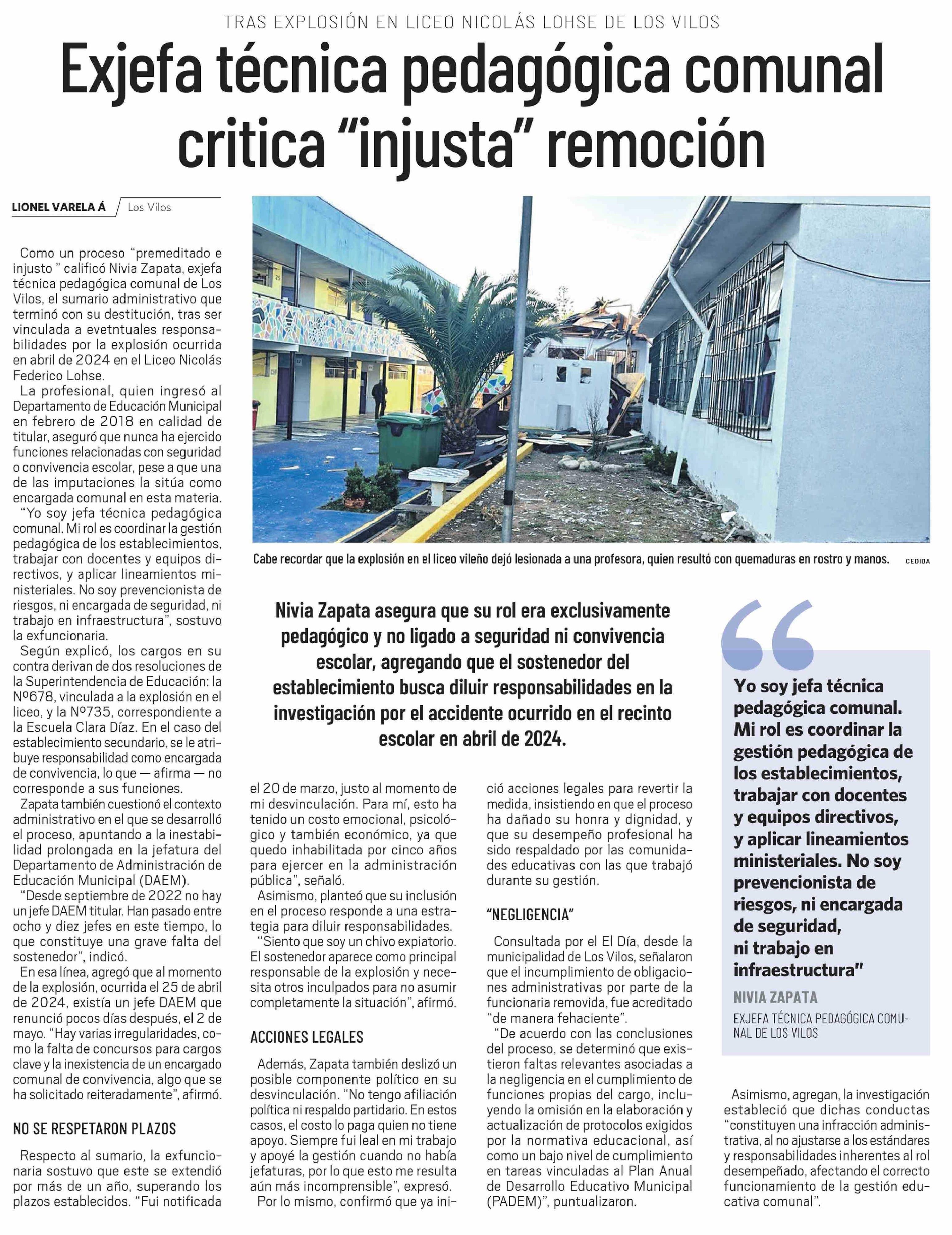 Exjefa técnica pedagógica comunal critica "injusta" remoción