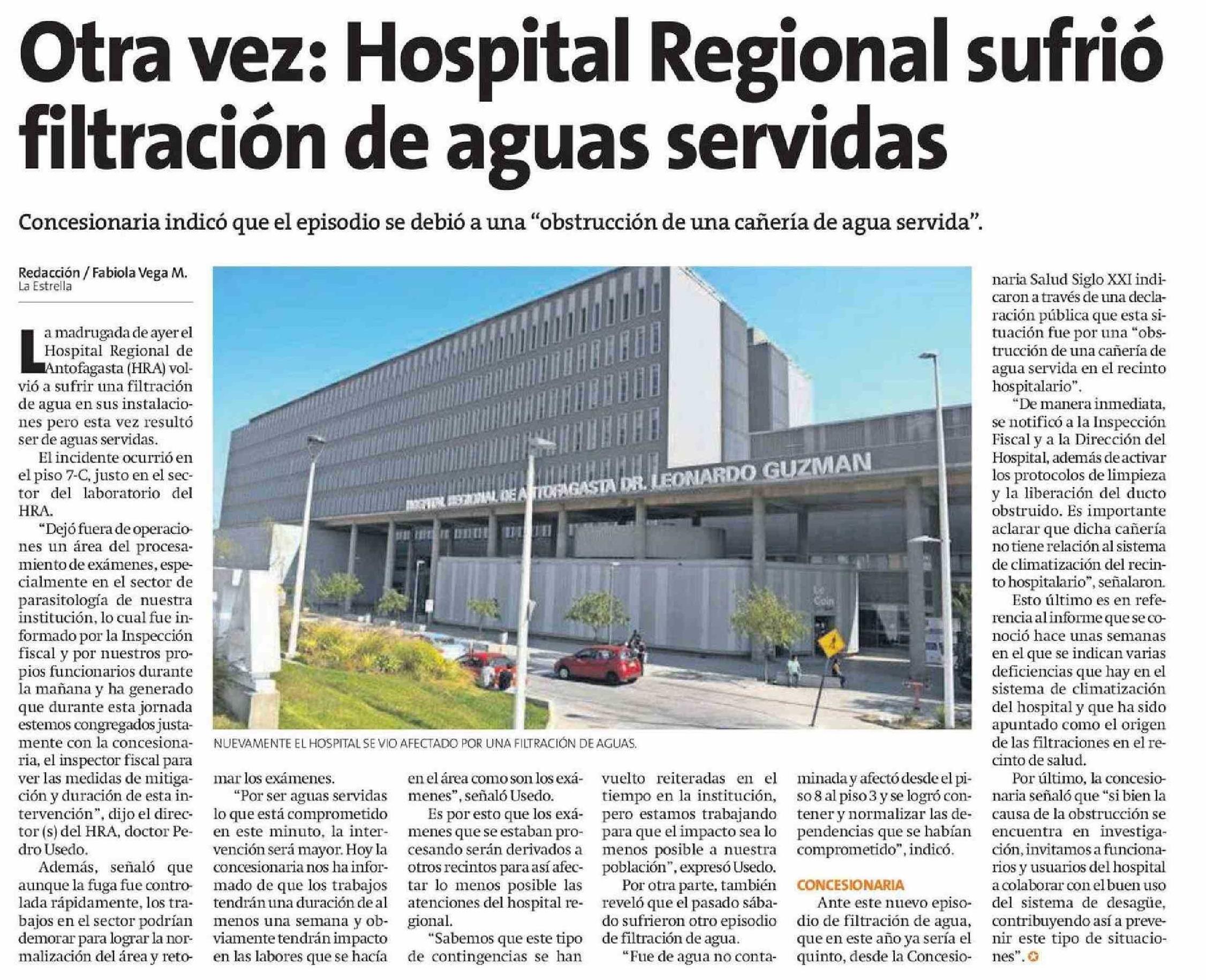 Otra vez: Hospital Regional sufrió filtración de aguas servidas