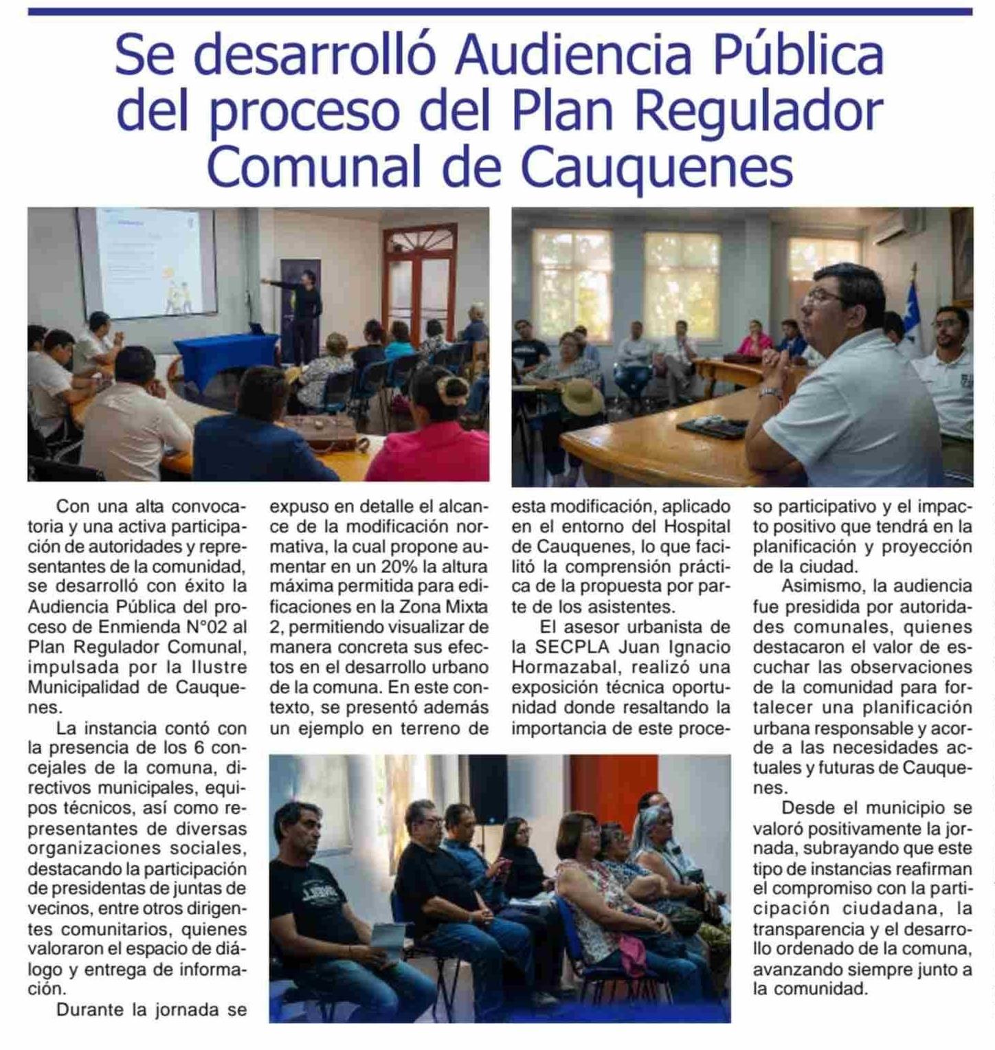 Se desarrolló Audiencia Pública del proceso del Plan Regulador Comunal de Cauquenes
