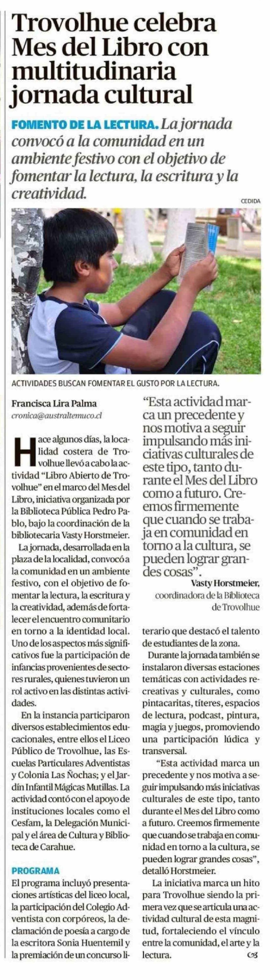 Trovolhue celebra Mes del Libro con multitudinaria jornada cultural