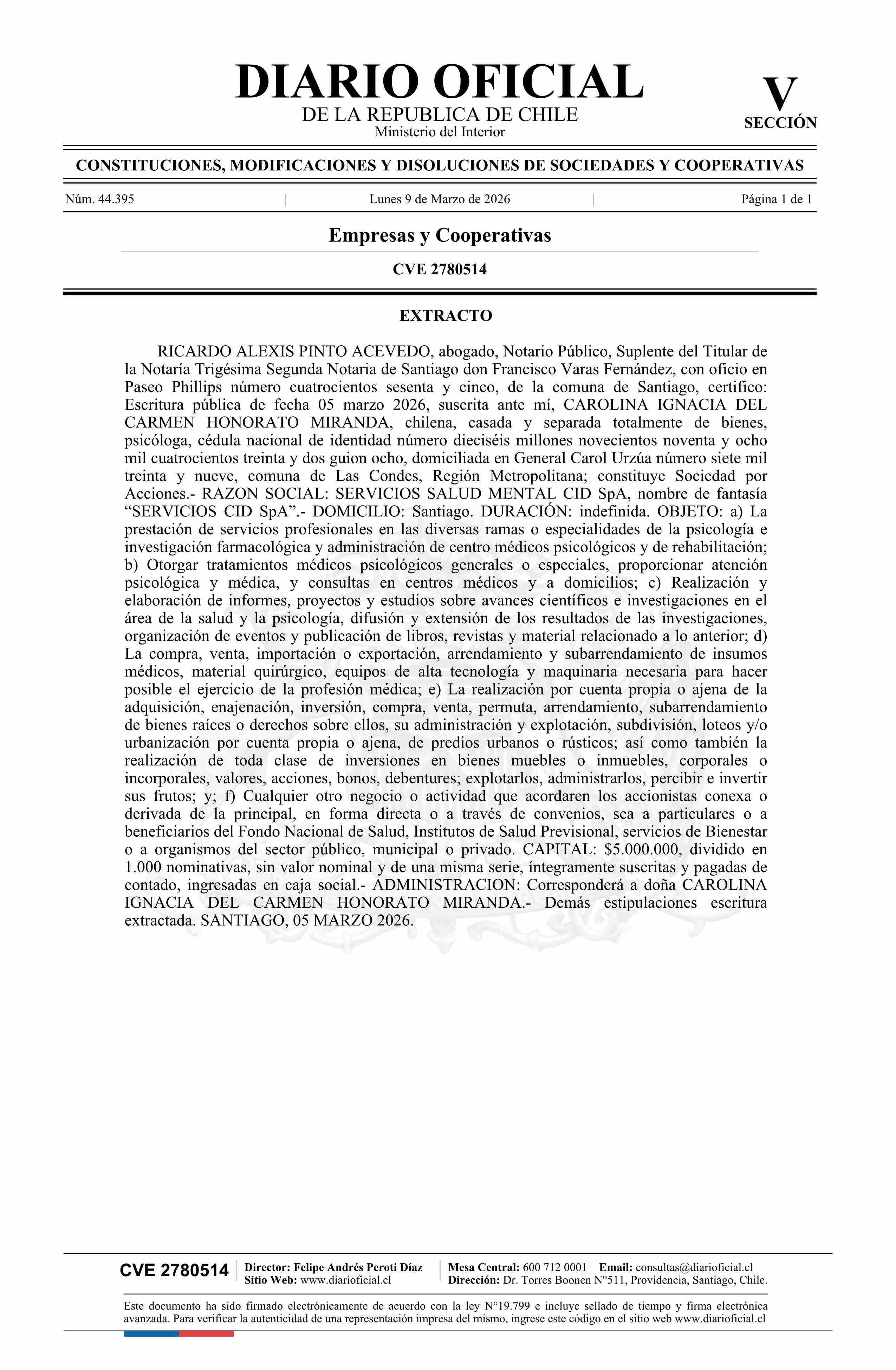 Diario Oficial Edición Electrónica (Diario Oficial de Chile - 5 Empresas Y Cooper)