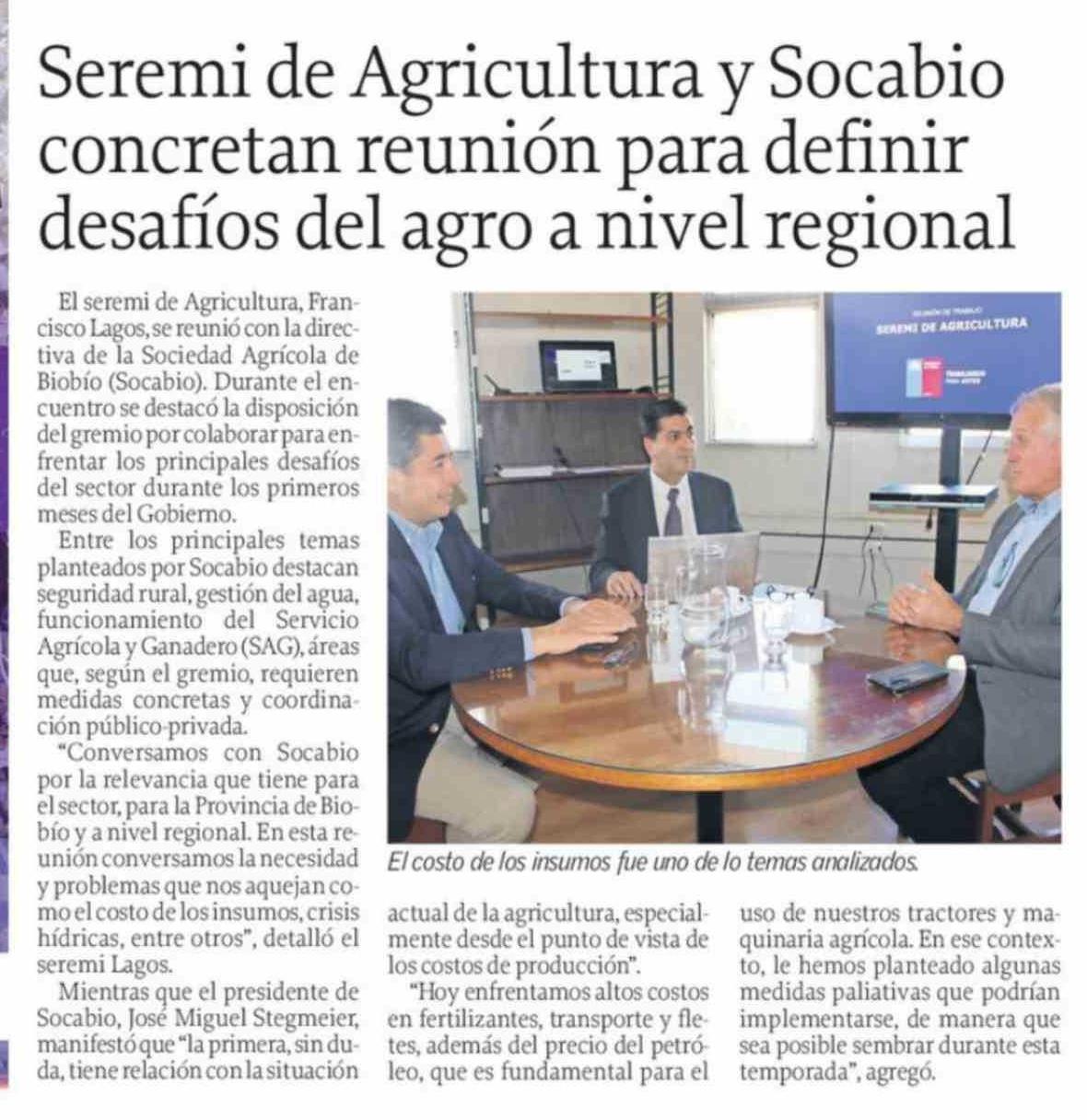 Seremi de Agricultura y Socabio concretan reunión para definir desafíos del agro a nivel regional