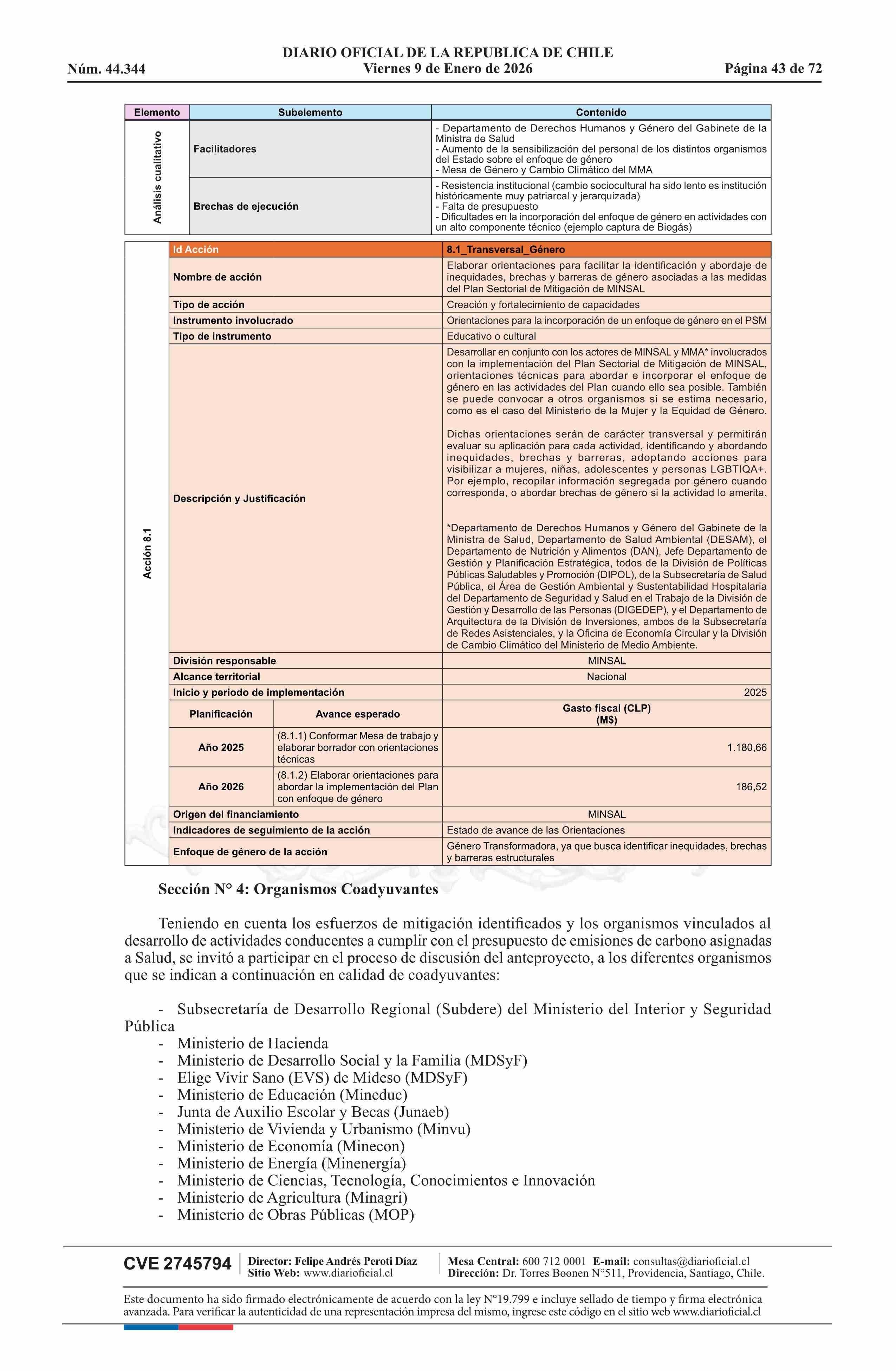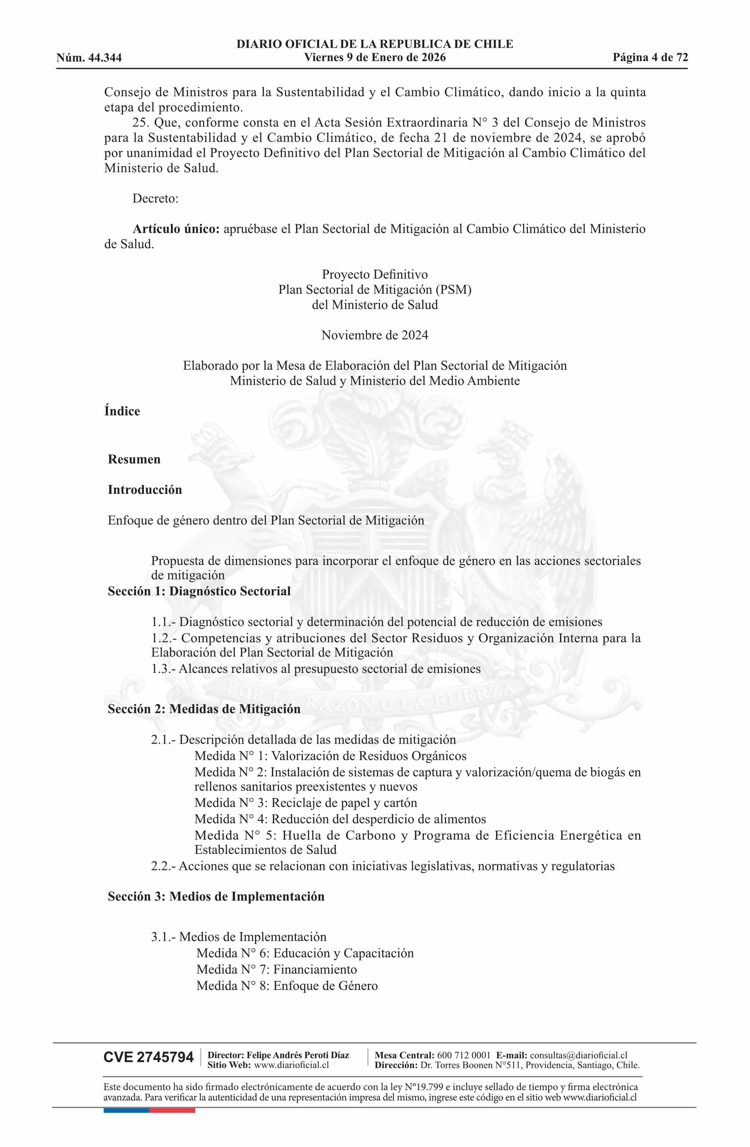 | Título: | Decreto número 48, de 2024.- Aprueba Plan Sectorial de Mitigación del Cambio Climático del Ministerio de Salud |