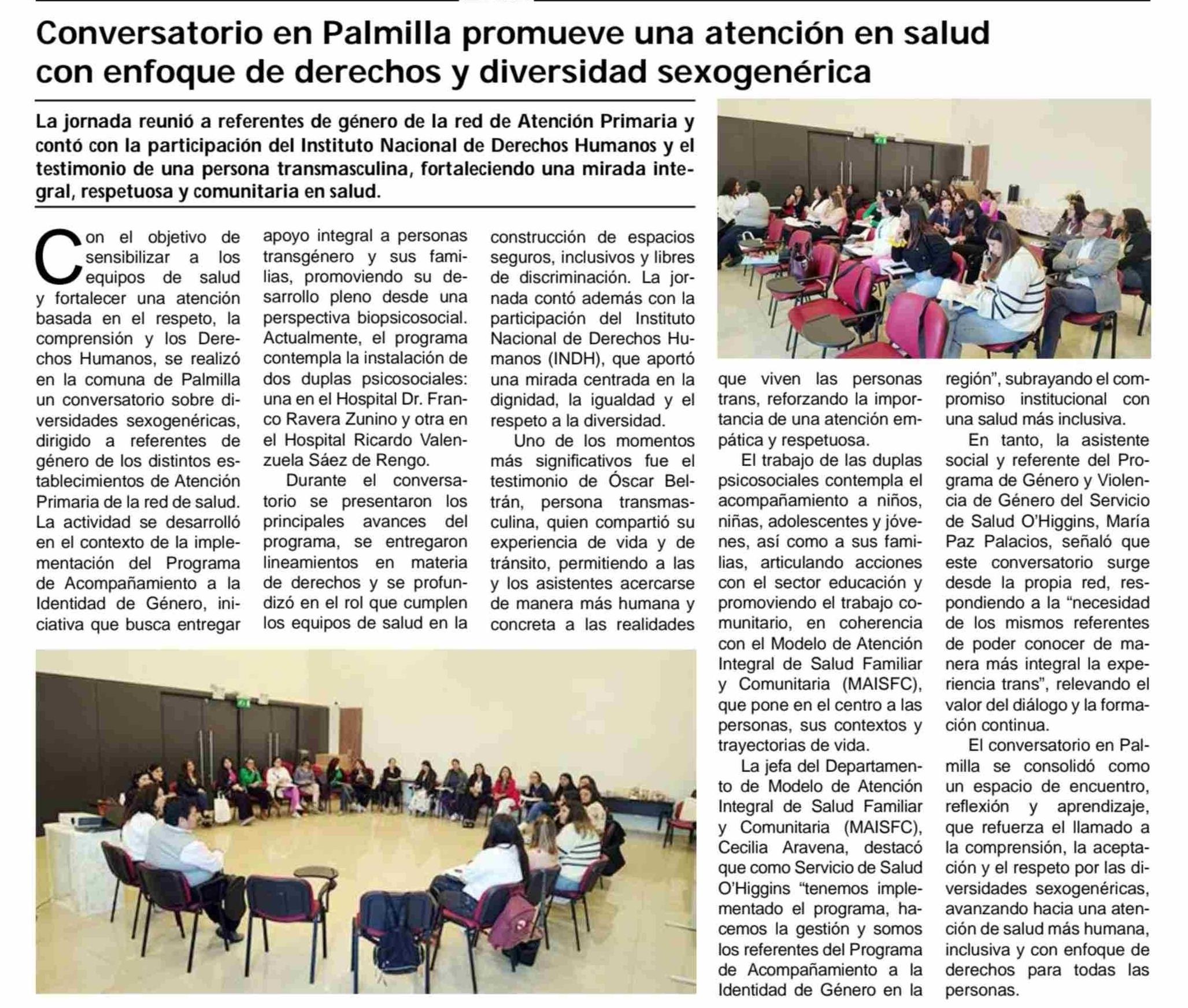 Conversatorio en Palmilla promueve una atención en salud con enfoque de derechos y diversidad sexogenérica