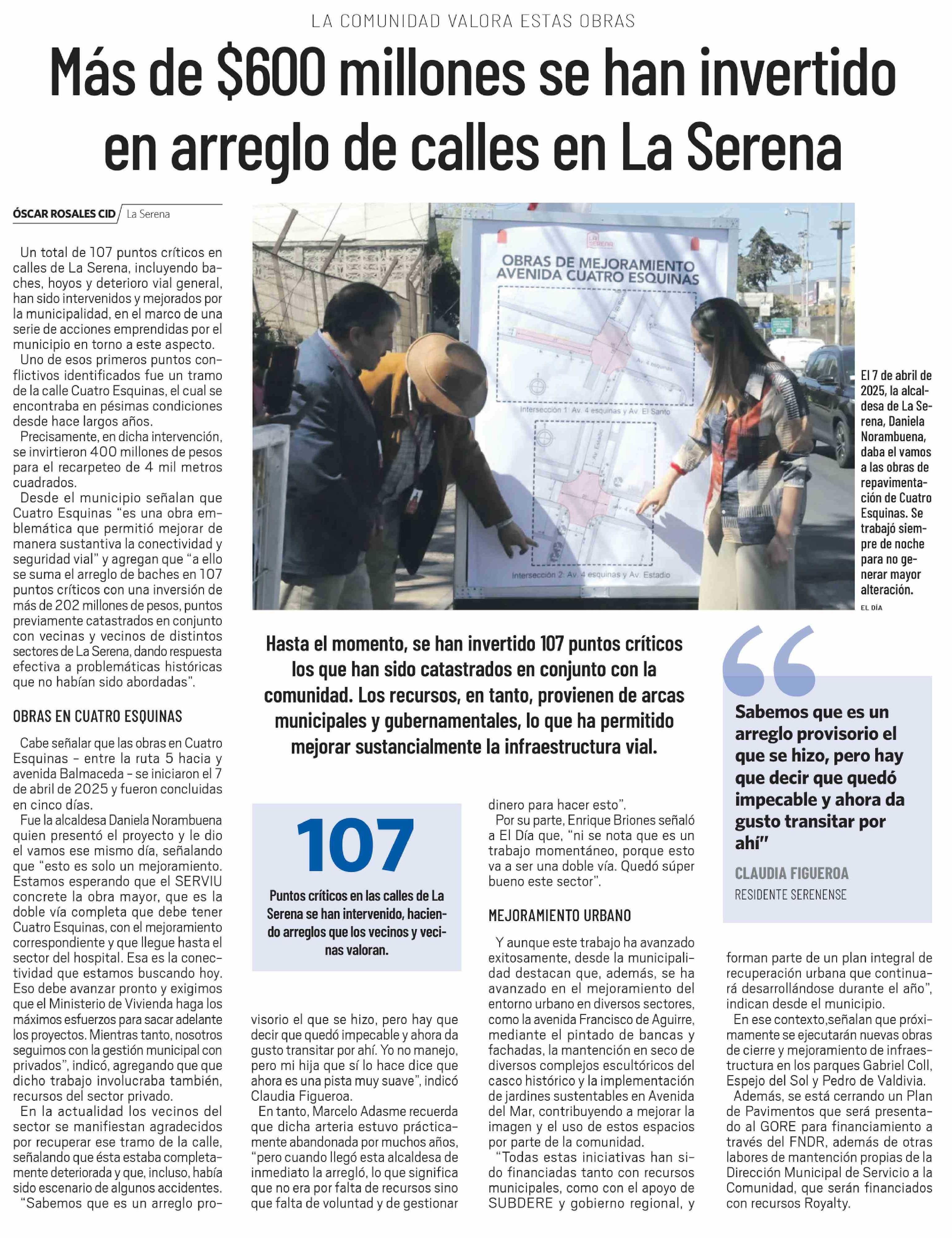 Más de $600 millones se han invertido en arreglo de calles en La Serena