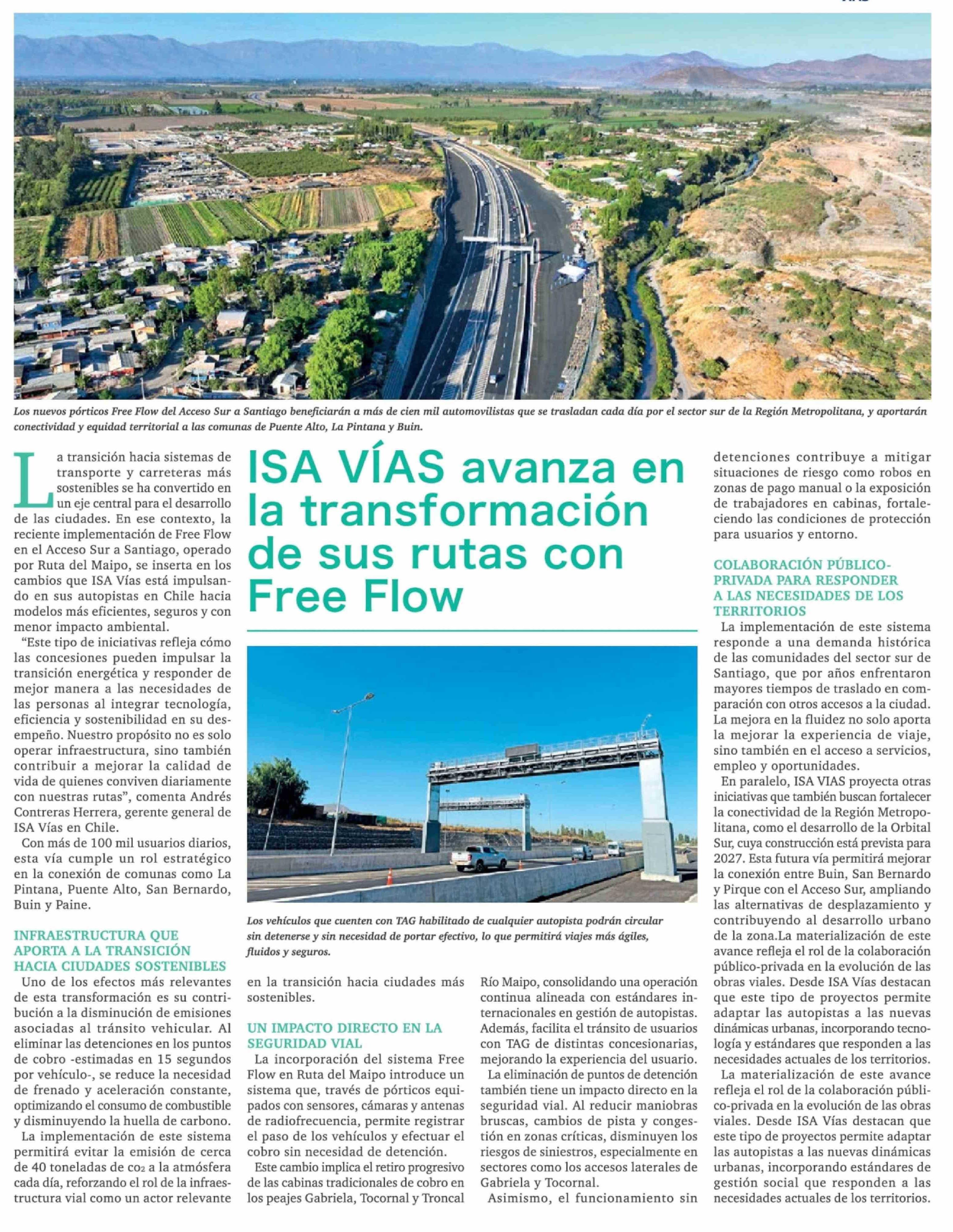 ISA VÍAS avanza en la transformación de sus rutas con Free Flow