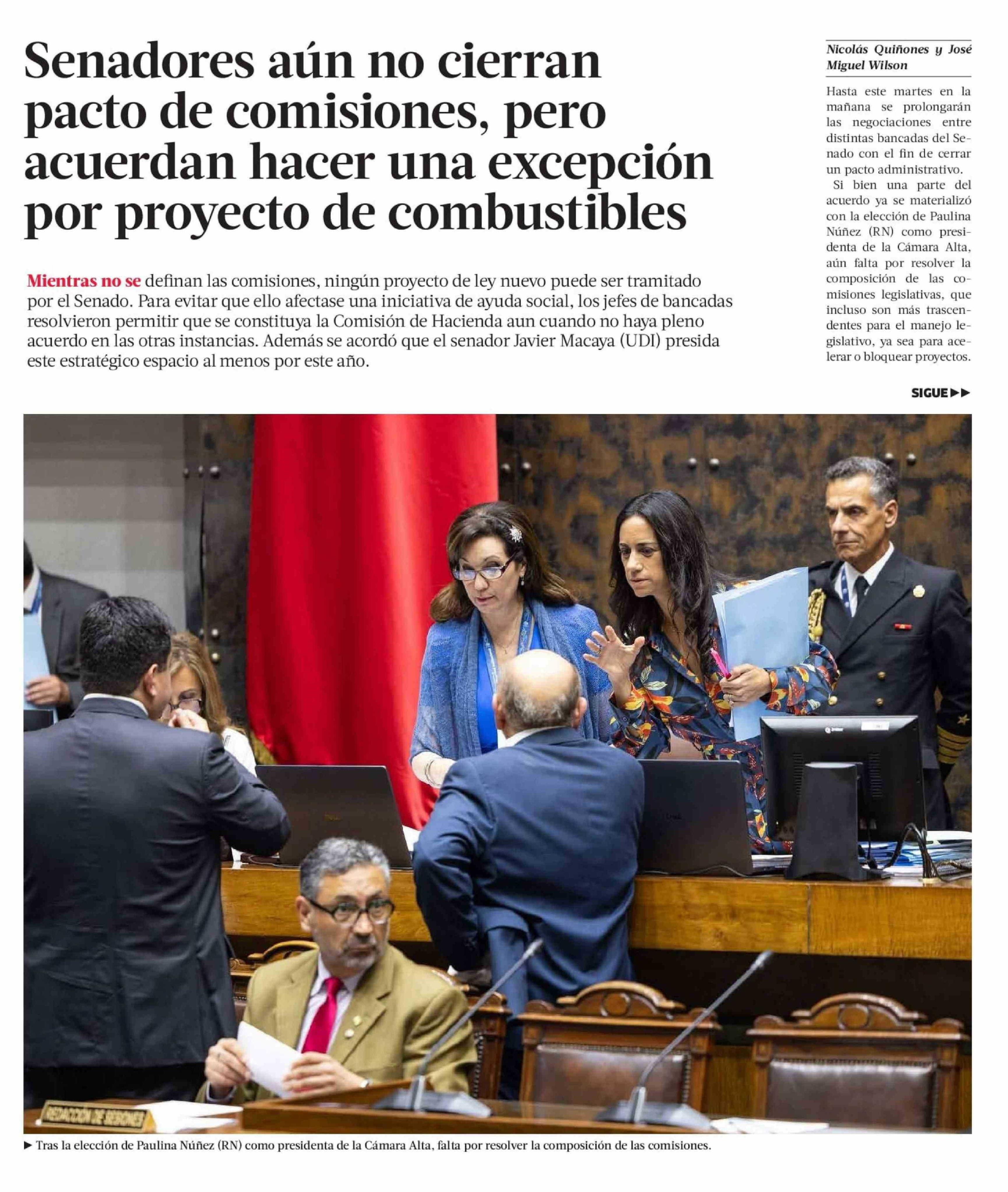 Senadores aún no cierran pacto de comisiones, pero acuerdan hacer una excepción por proyecto de combustibles