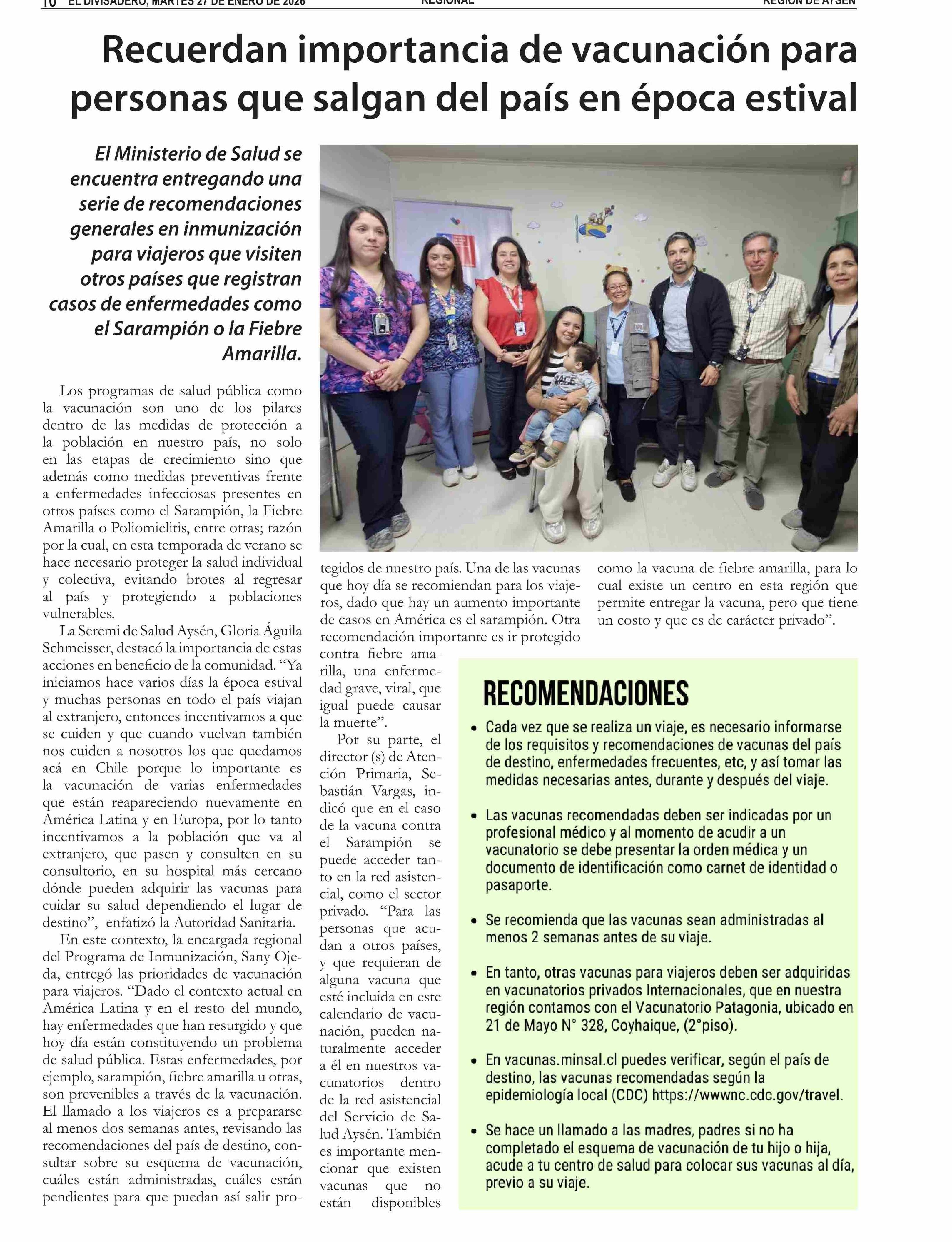 Recuerdan ¡mportancia de vacunación para personas que salgan del país en época estival