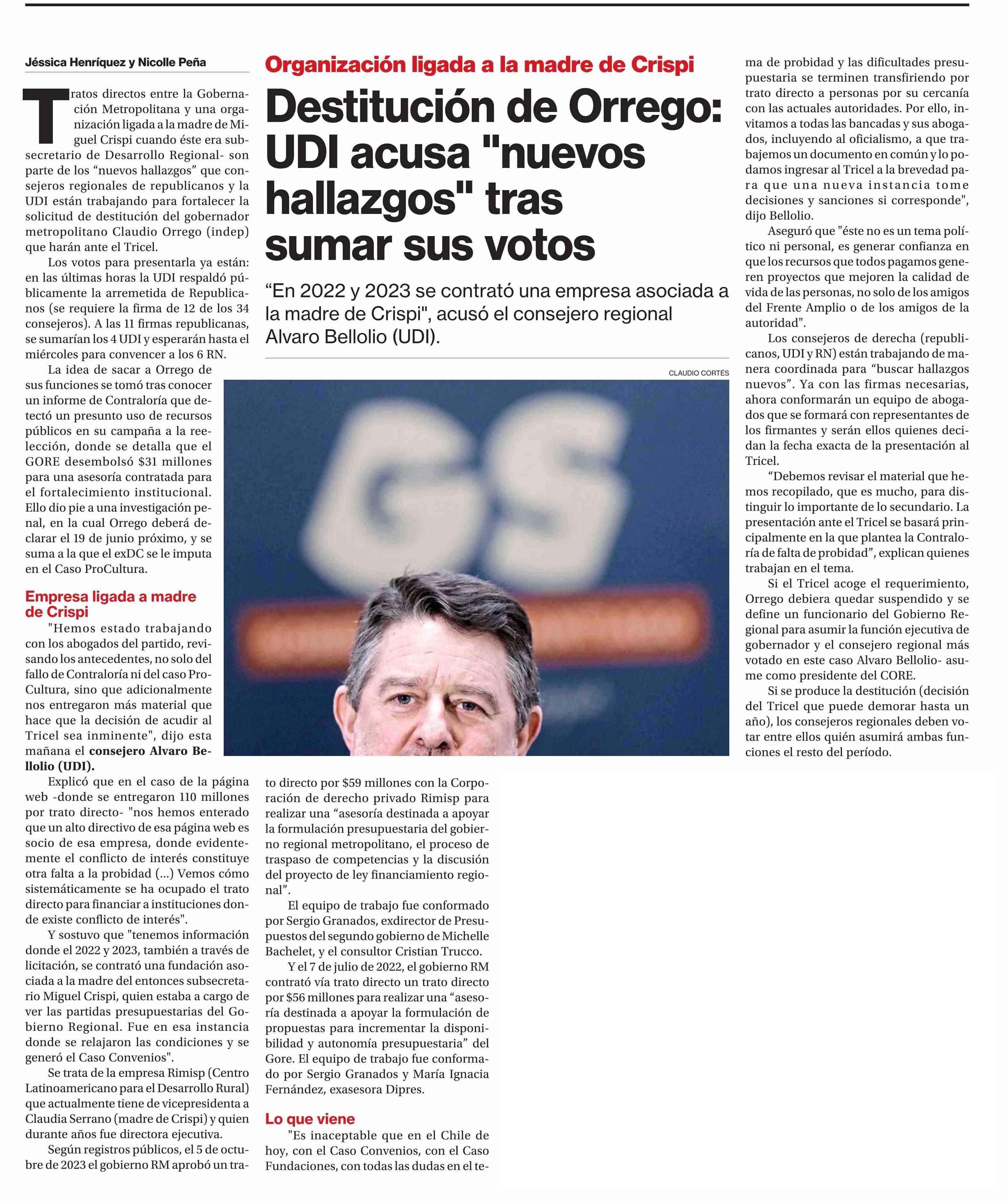 Destitución de Orrego: UDI acusa "nuevos hallazgos” tras sumar sus votos