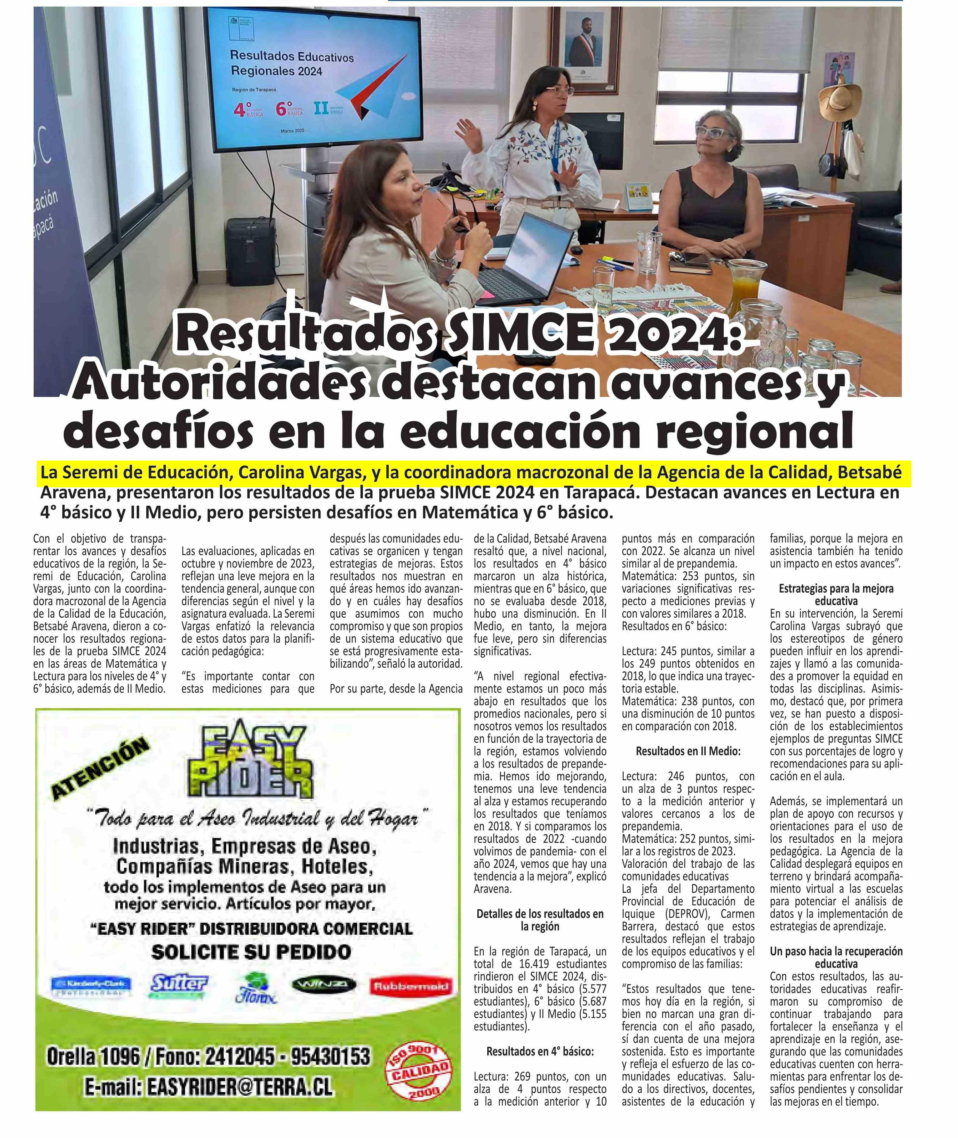 Resultado SIMCE 2024:Autoridades destacan avances y desafíos en la educación regional