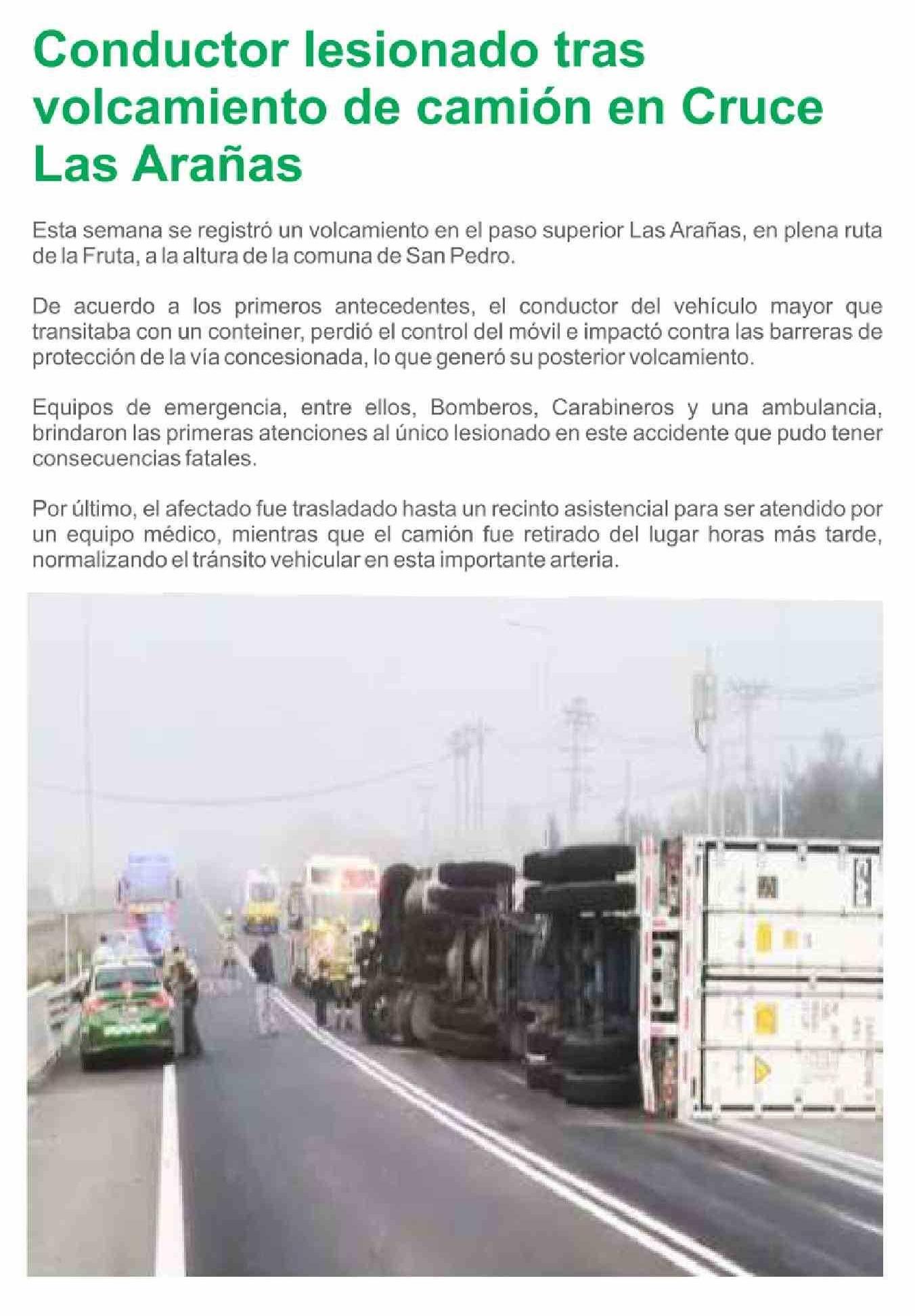 | Título: | Equipos de emergencia, entre ellos, Bomberos, Carabineros y una ambulancia, brindaron las primeras atenciones al único lesionado en este accidente que pudo tener consecuencias fatales. |
