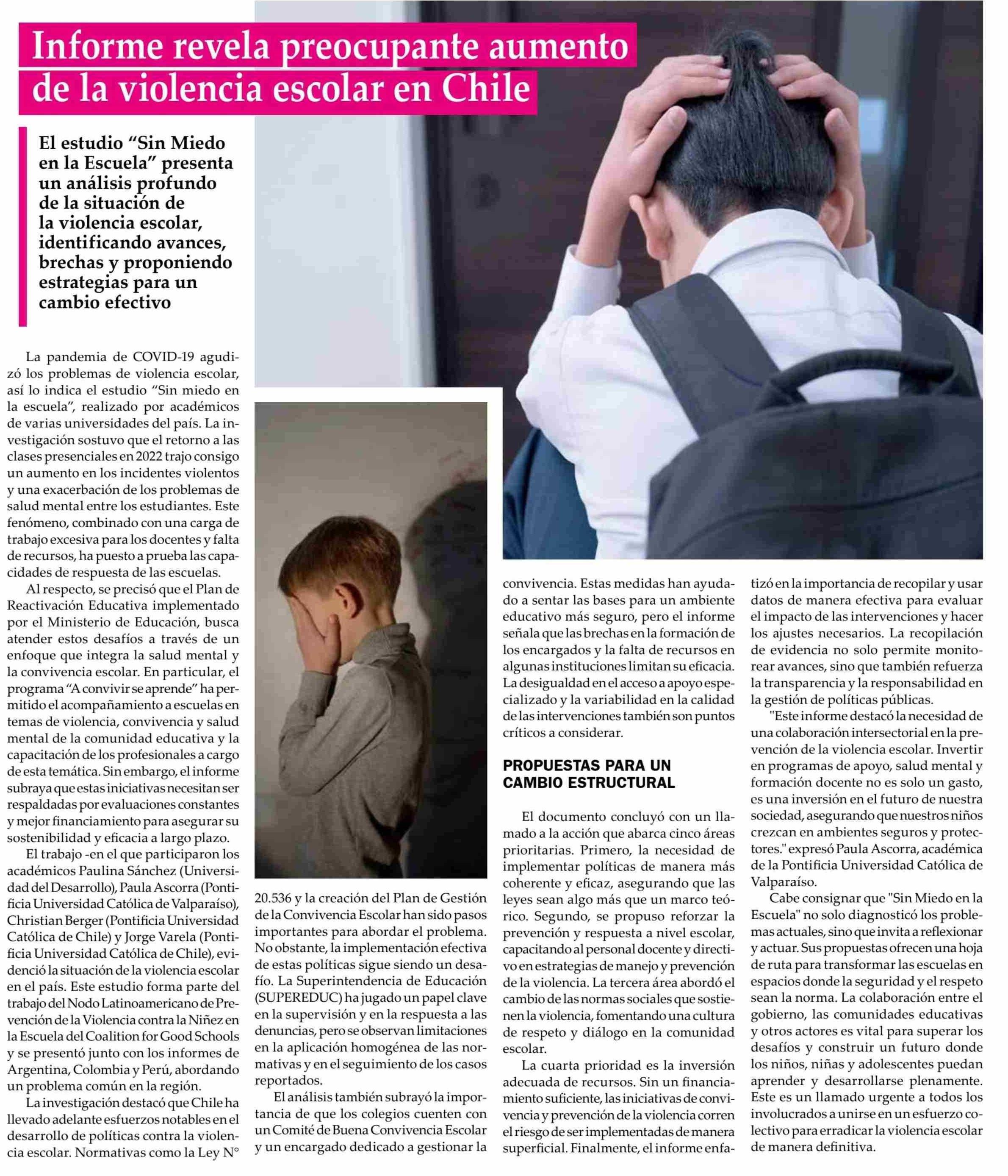 Informe revela preocupante aumento de la violencia escolar en Chile