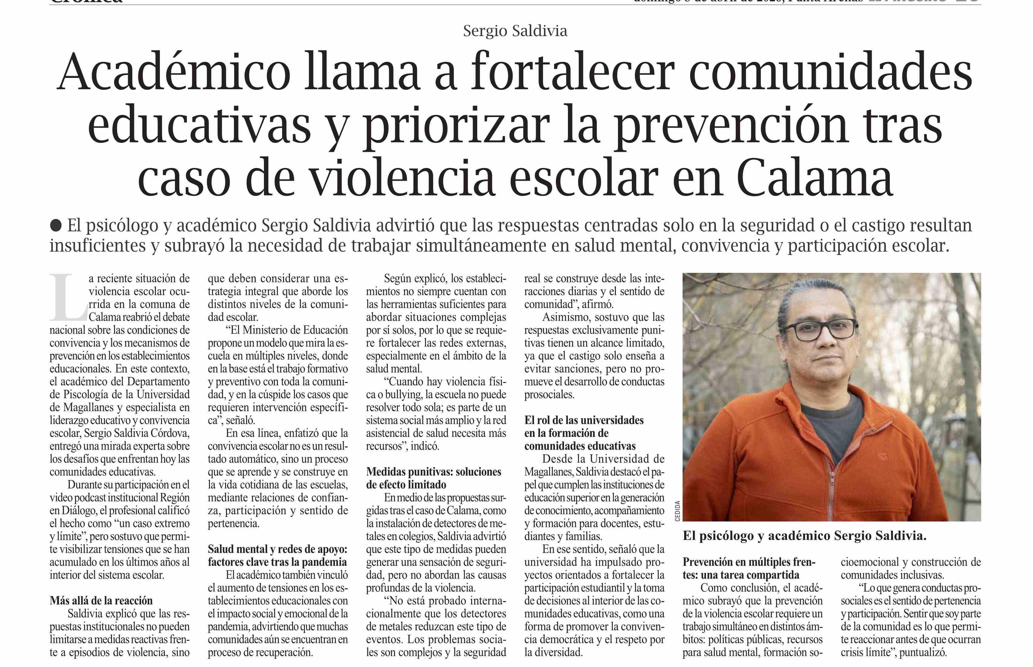 Académico llama a fortalecer comunidades educativas y priorizar la prevención tras caso de violencia escolar en Calama