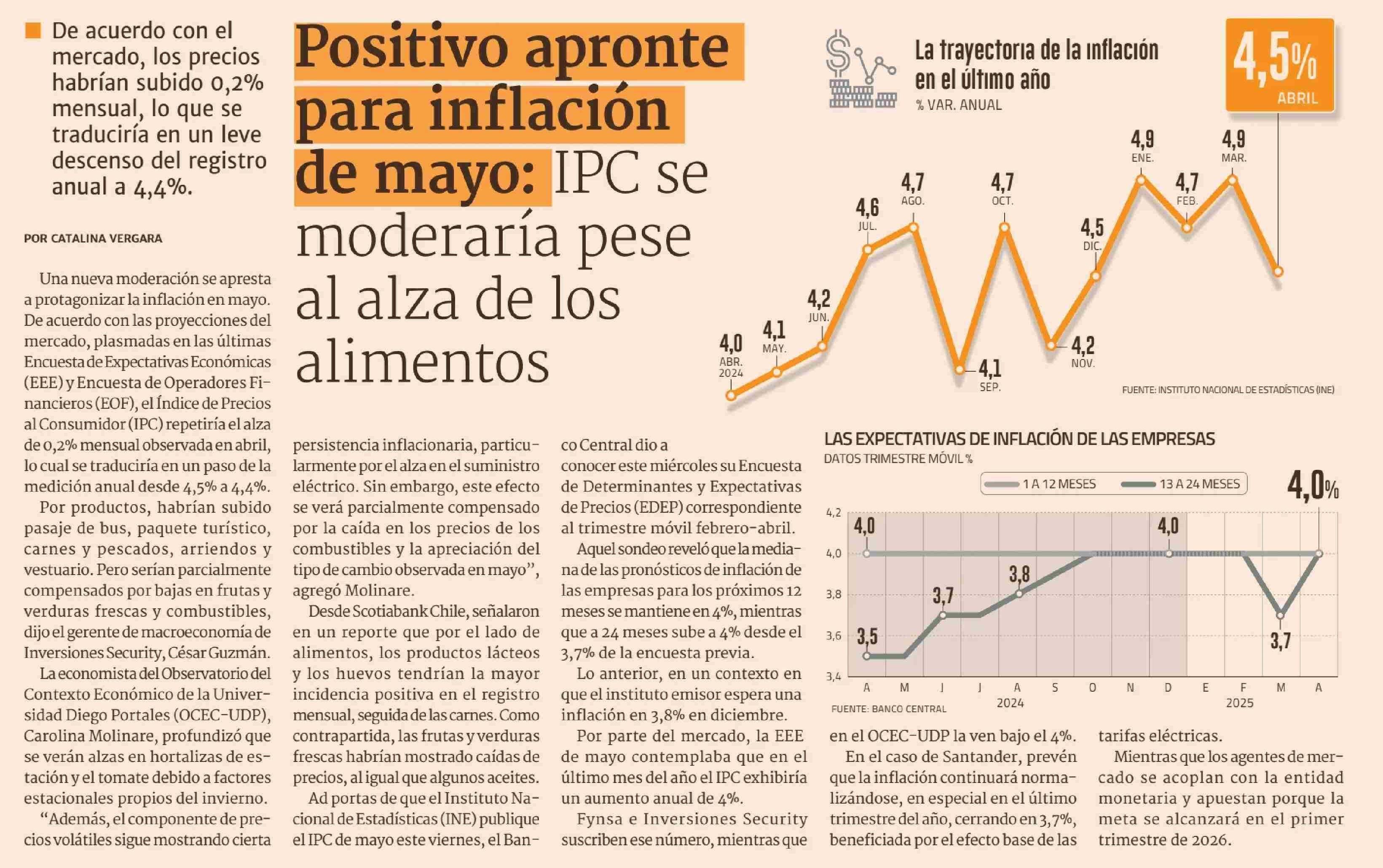 Positivo apronte para inflación de mayo: IPC se moderaría pese al alza de los alimentos