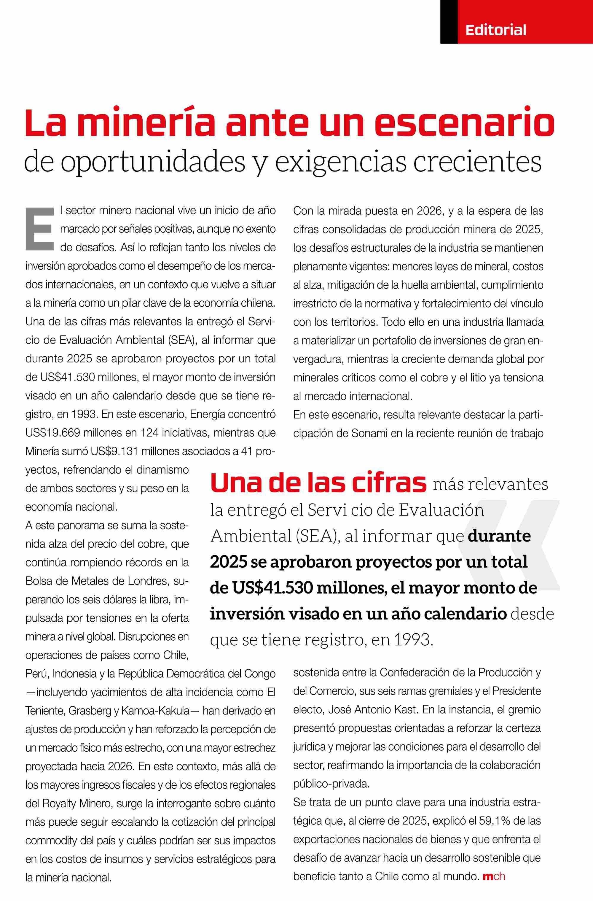 EDITORIAL: La minería ante un escenario de oportunidades y exigencias crecientes