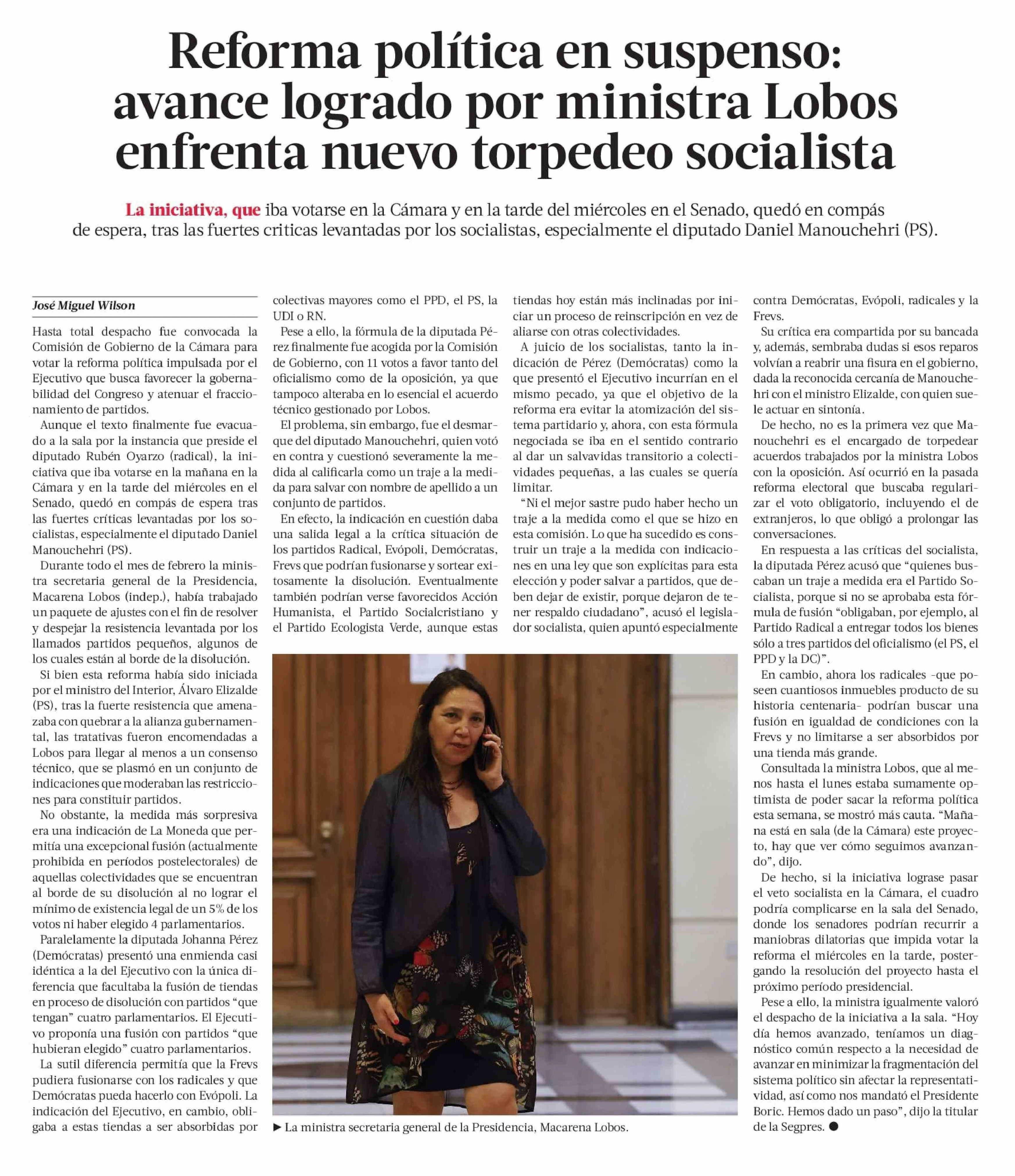 Reforma política en suspenso: avance logrado por ministra Lobos enfrenta nuevo torpedeo socialista