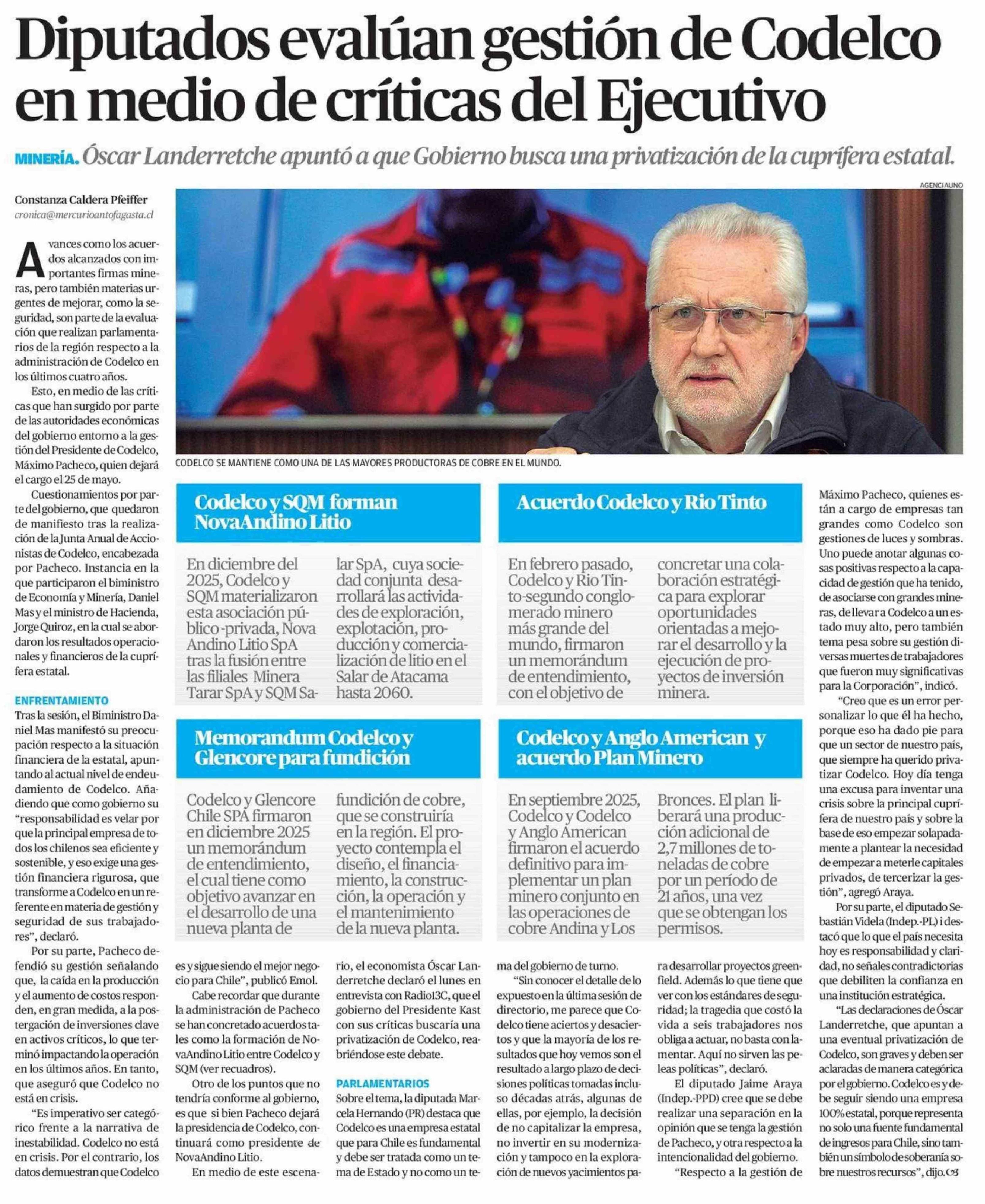Diputados evalúan gestión de Codelco en medio de críticas del Ejecutivo