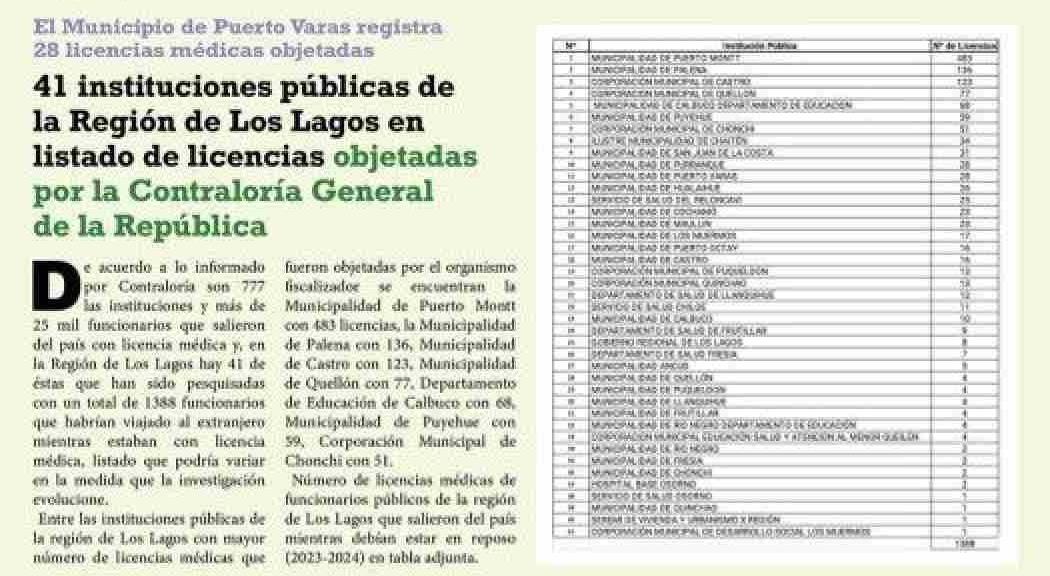 41 instituciones públicas de la Región de Los Lagos en listado de licencias objetadas por la Contraloría General de la República