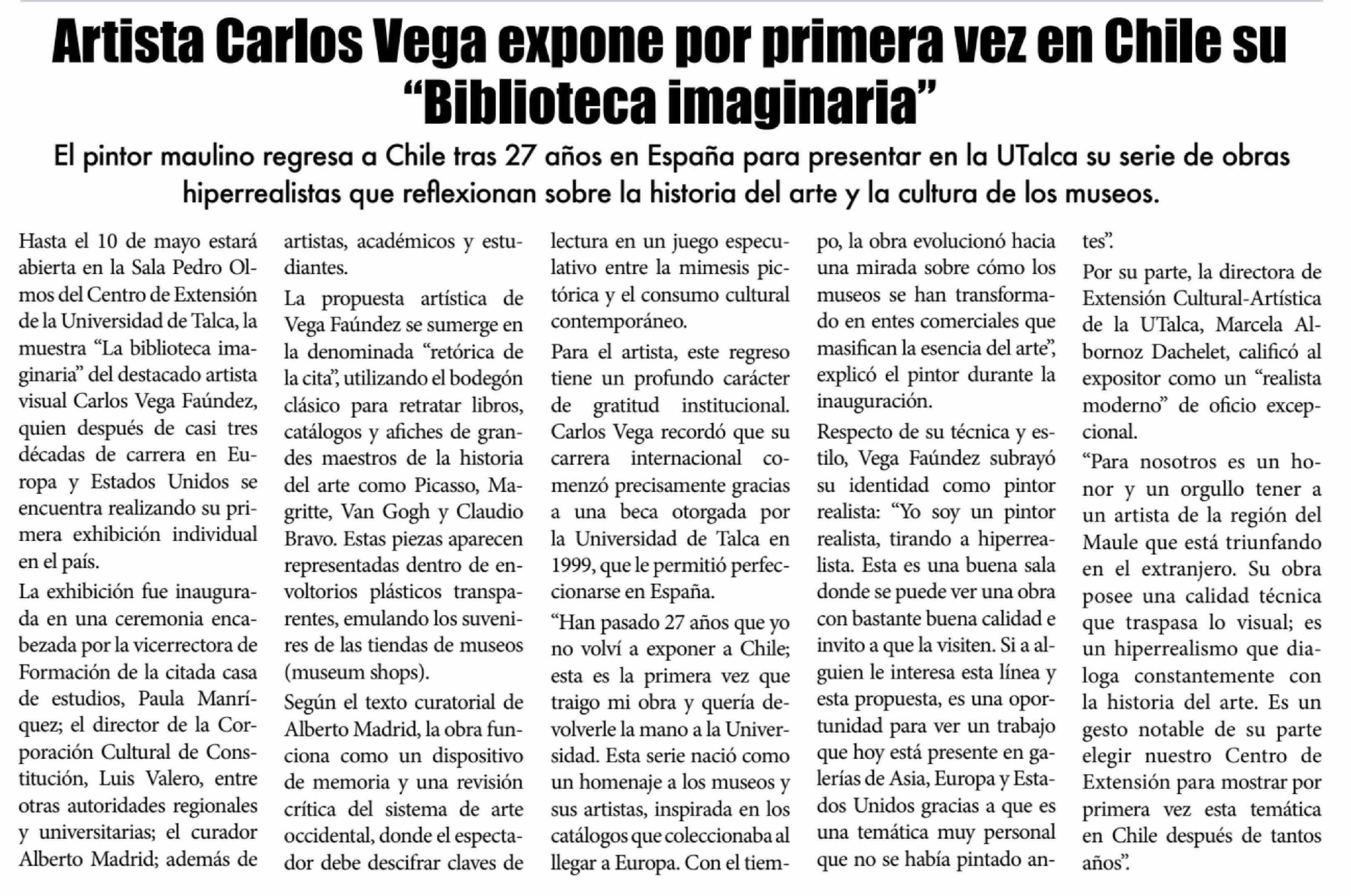 Artista Carlos Vega expone por primera vez en Chile su "Biblioteca imaginaria"