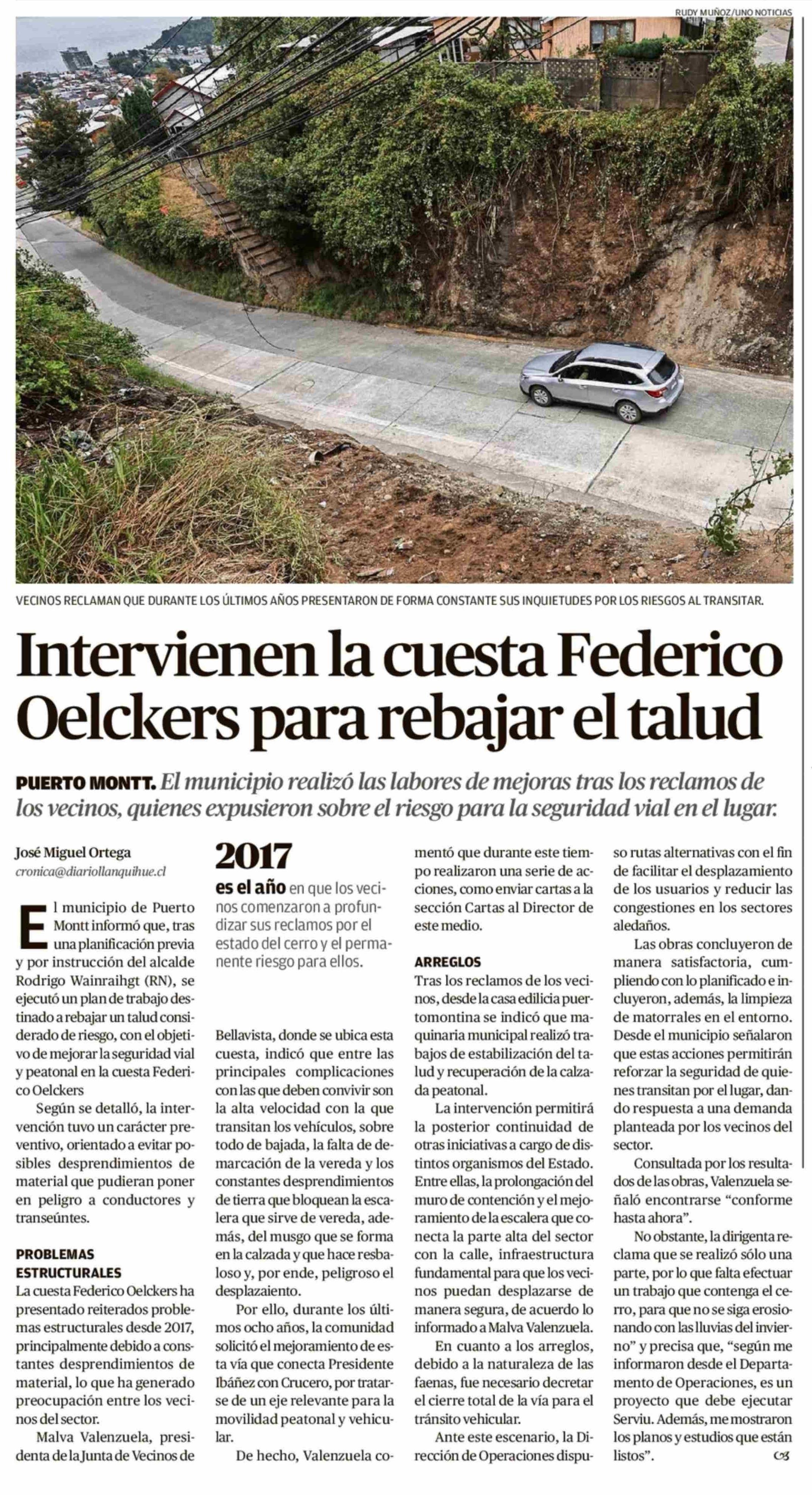 Intervienen la cuesta Federico Oelckers para rebajar el talud