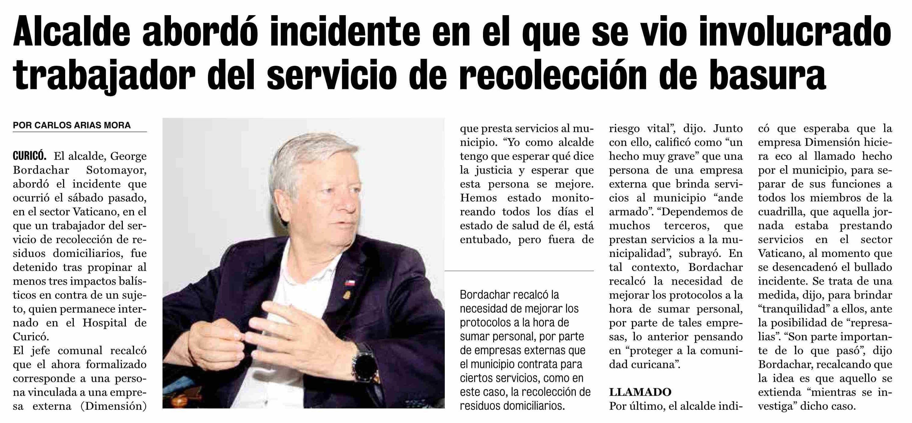 Alcalde abordó incidente en el que se vio involucrado trabajador del servicio de recolección de basura