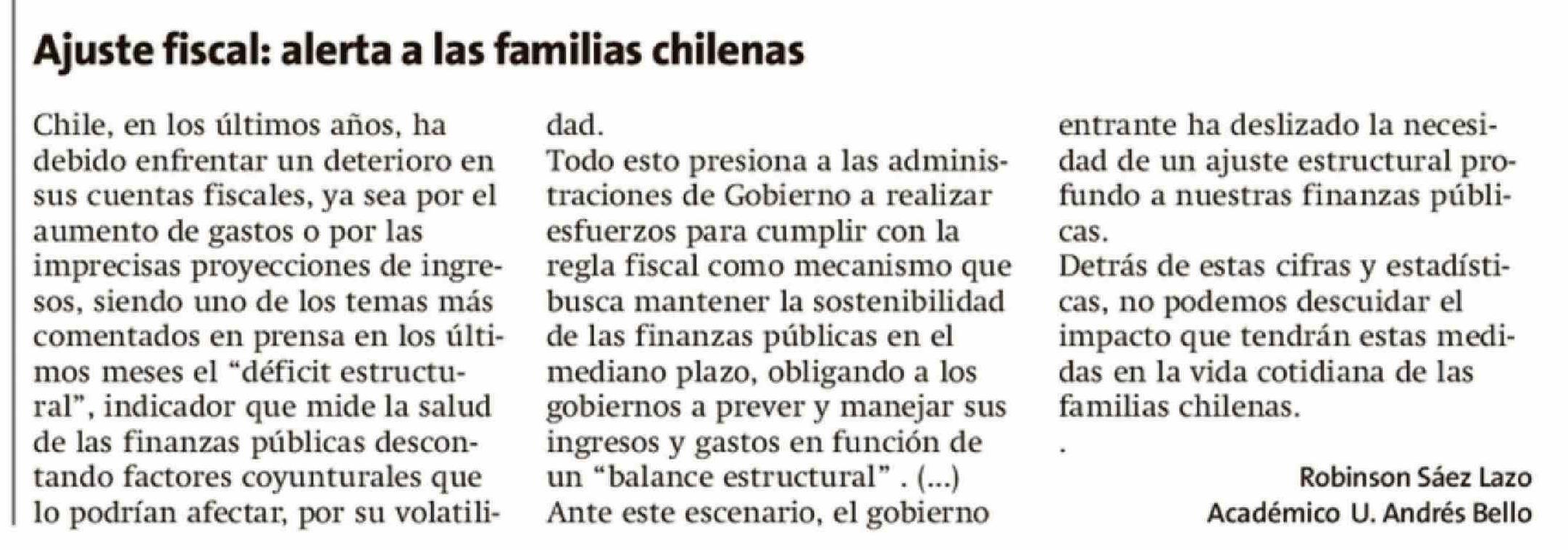 Cartas: Ajuste fiscal: alerta a las familias chilenas