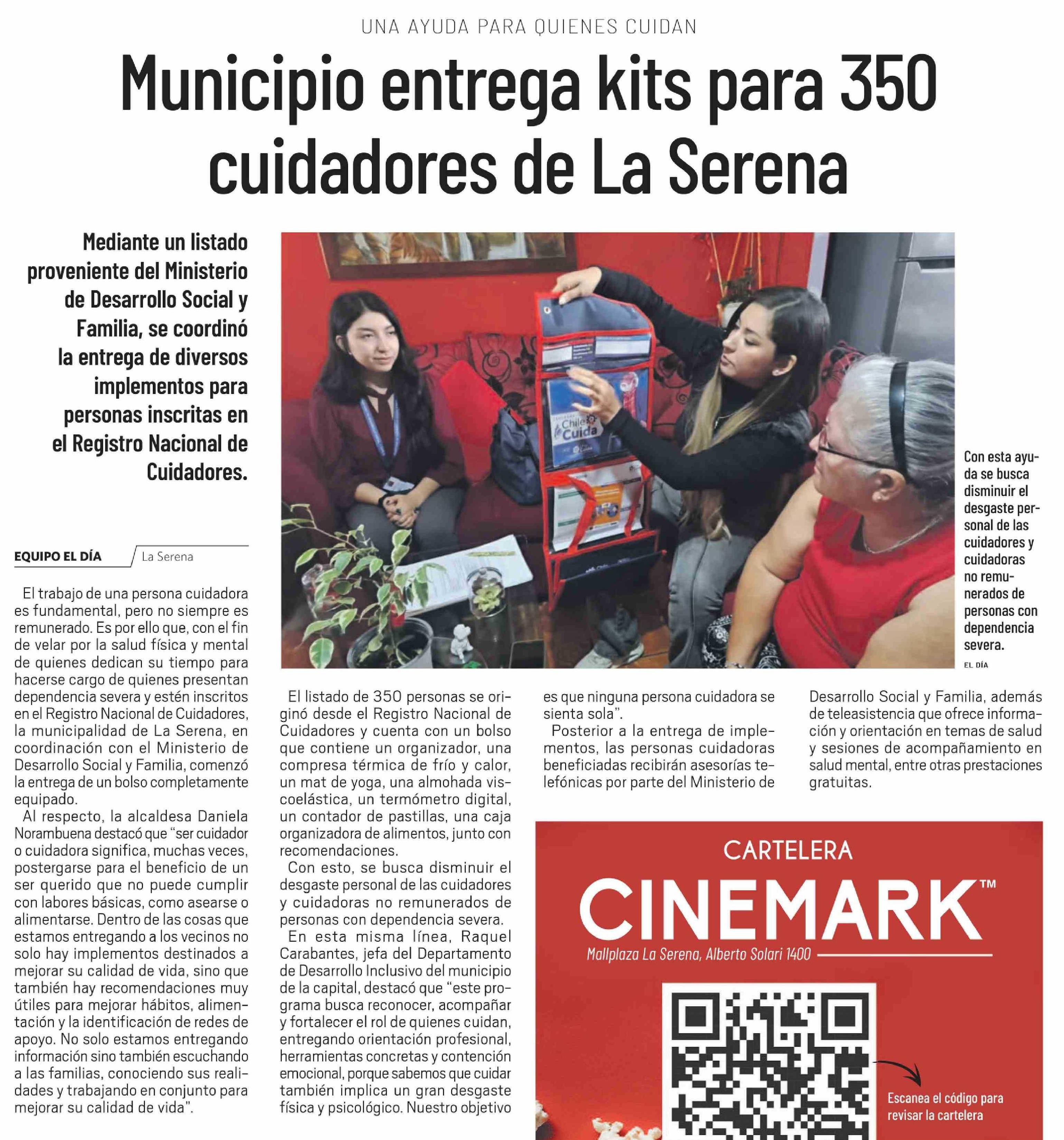 Municipio entrega kits para 350 cuidadores de La Serena