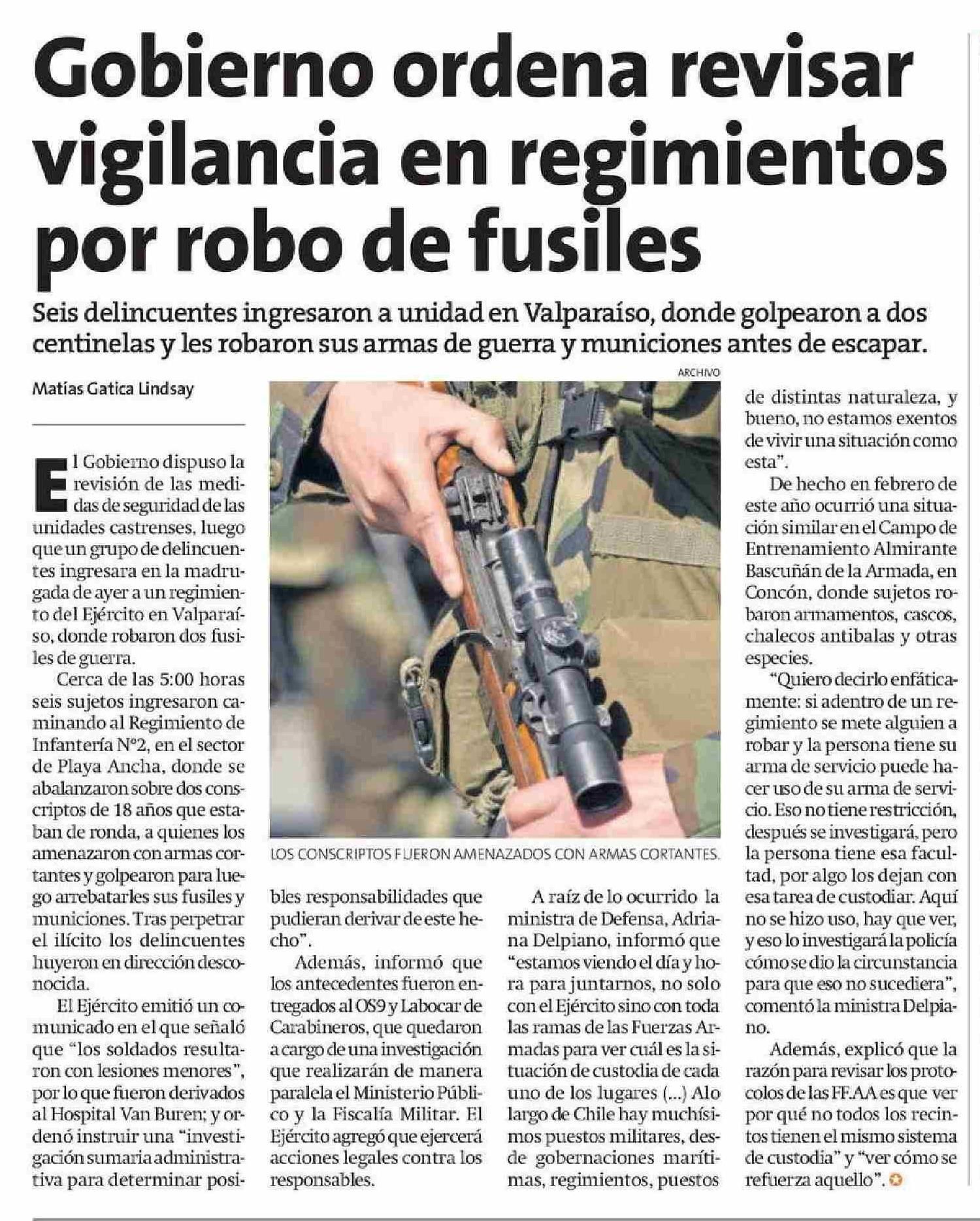 Gobierno ordena revisar vigilancia en regimientos por robo de fusiles