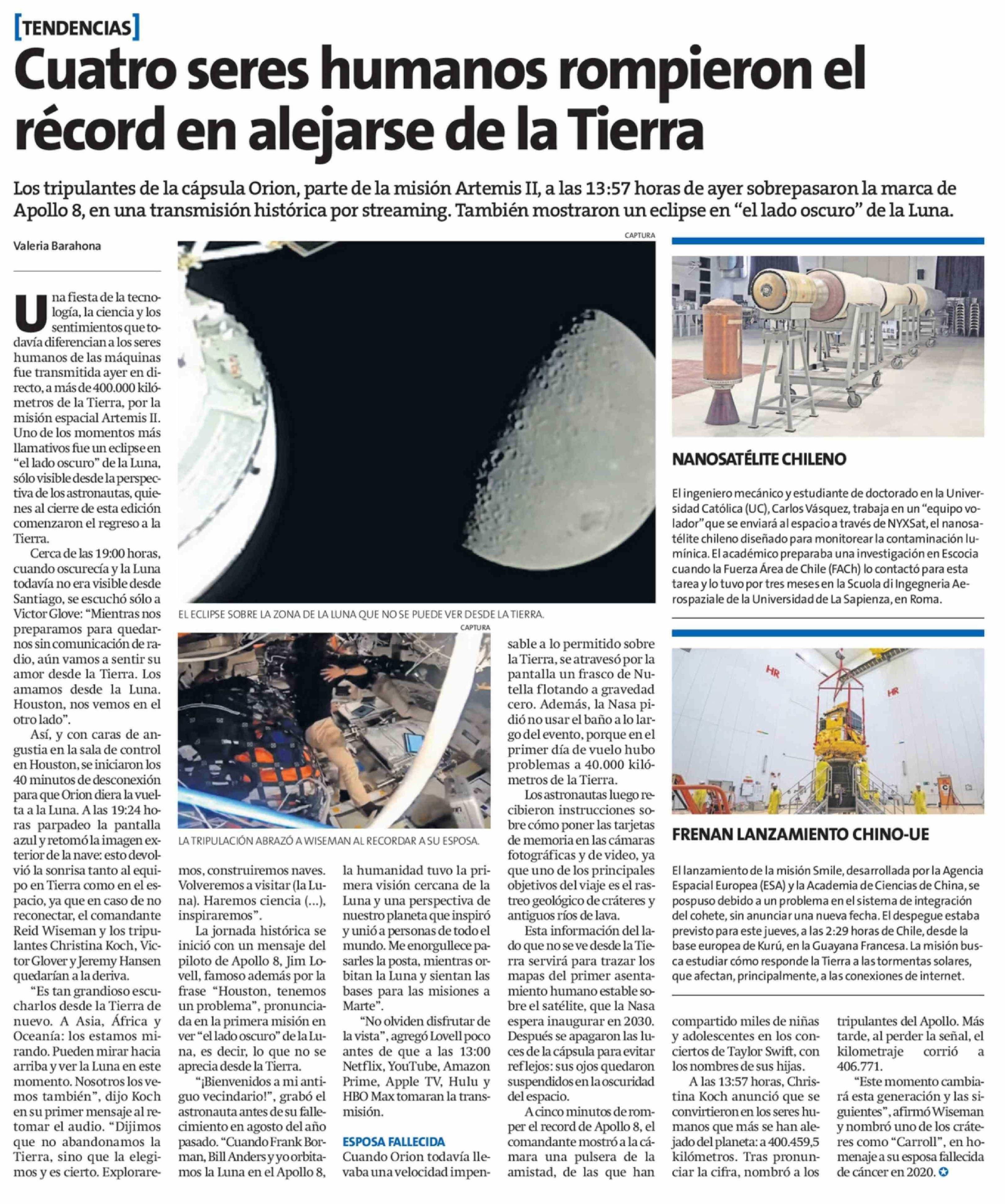 Título: Cuatro seres humanos rompieron el récord en alejarse de la Tierra