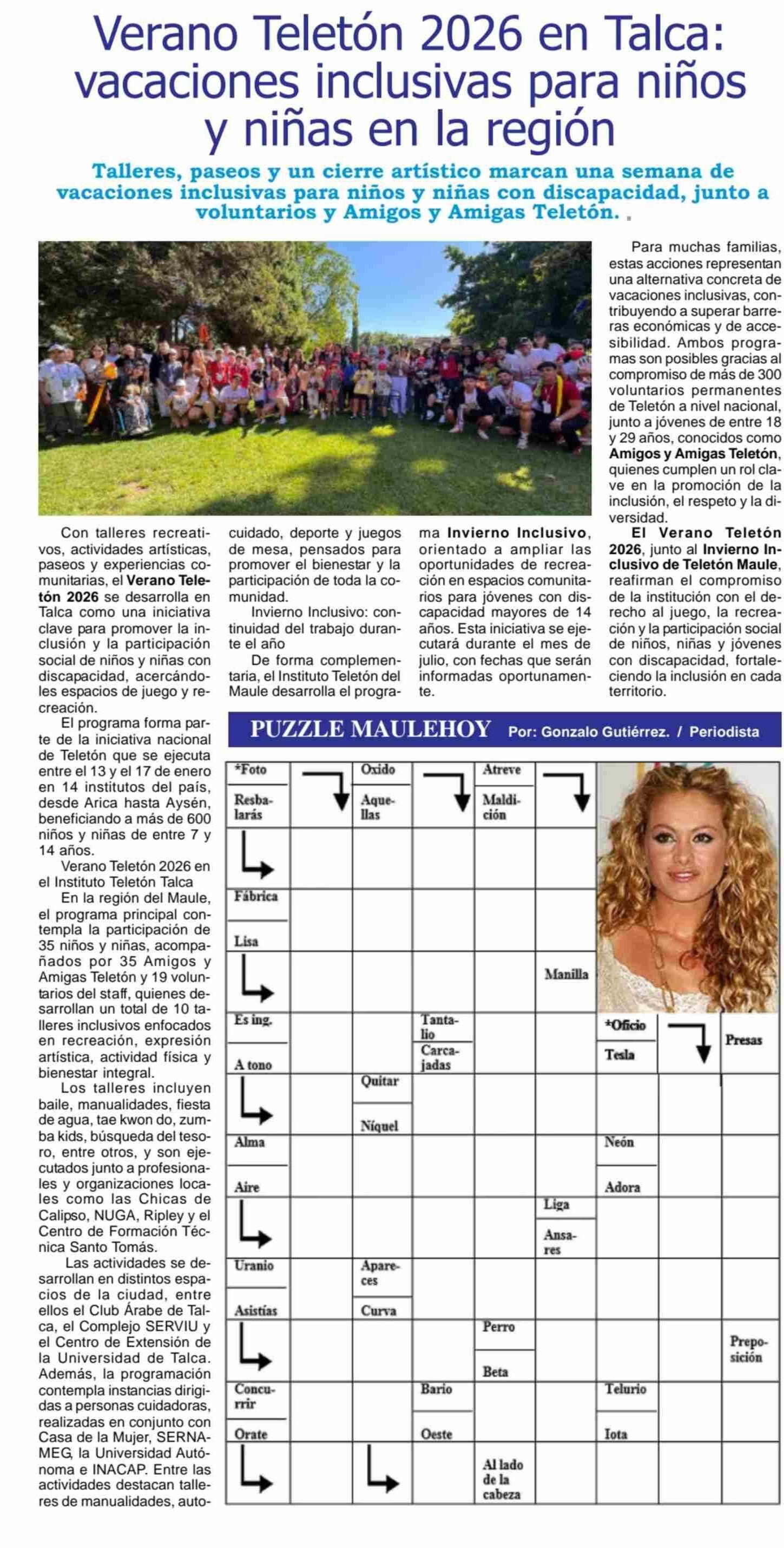Verano Teletón 2026 en Talca: vacaciones inclusivas para niños y niñas en la región