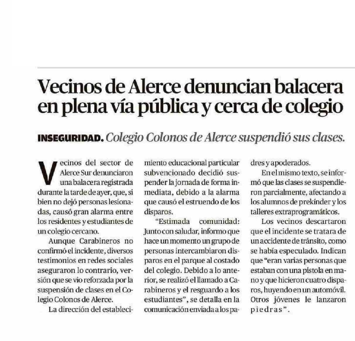 Vecinos de Alerce denuncian balacera en plena vía pública y cerca de colegio