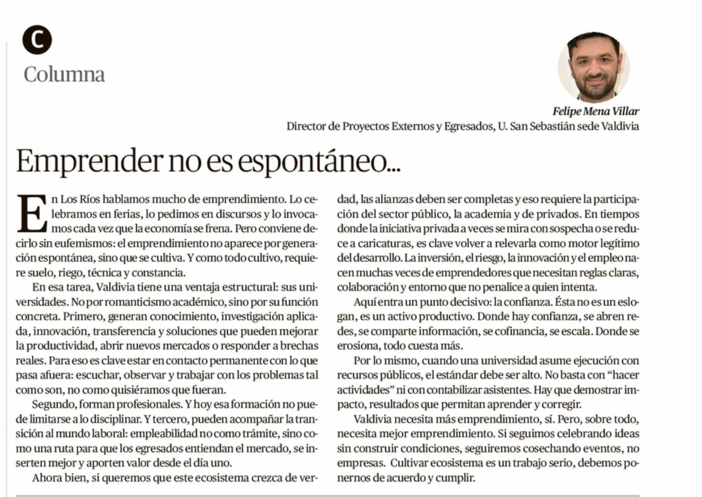 COLUMNAS DE OPINIÓN: Emprender no es espontáneo...