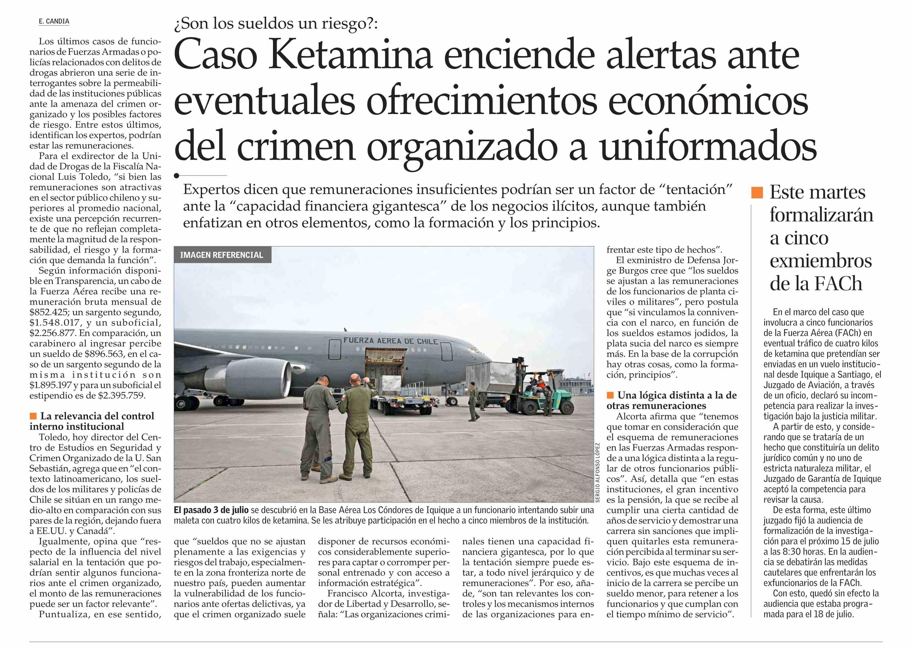 Caso Ketamina enciende alertas ante eventuales ofrecimientos económicos del crimen organizado a uniformados