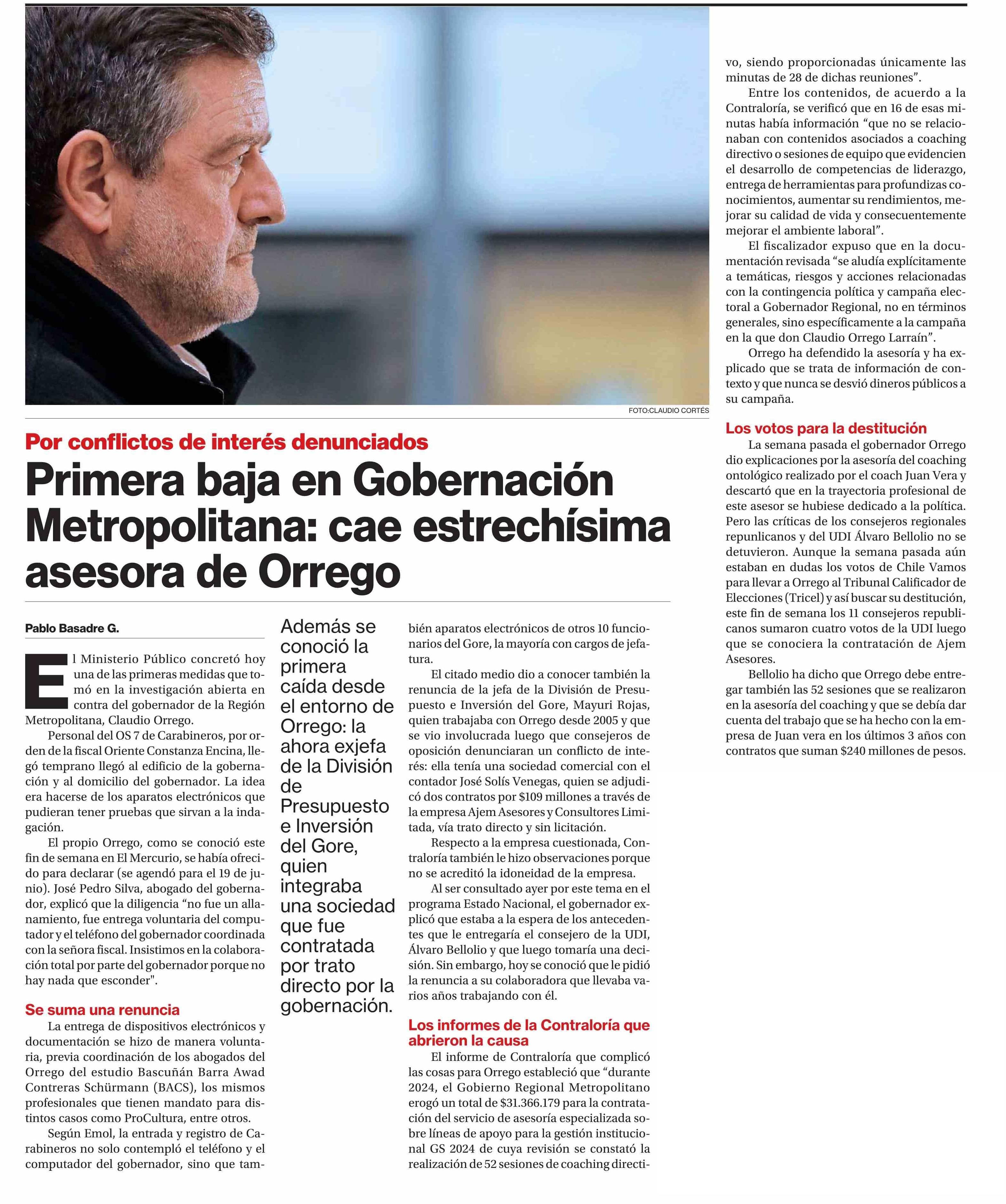 Primera baja en Gobernación Metropolitana: cae estrechísima asesora de Orrego