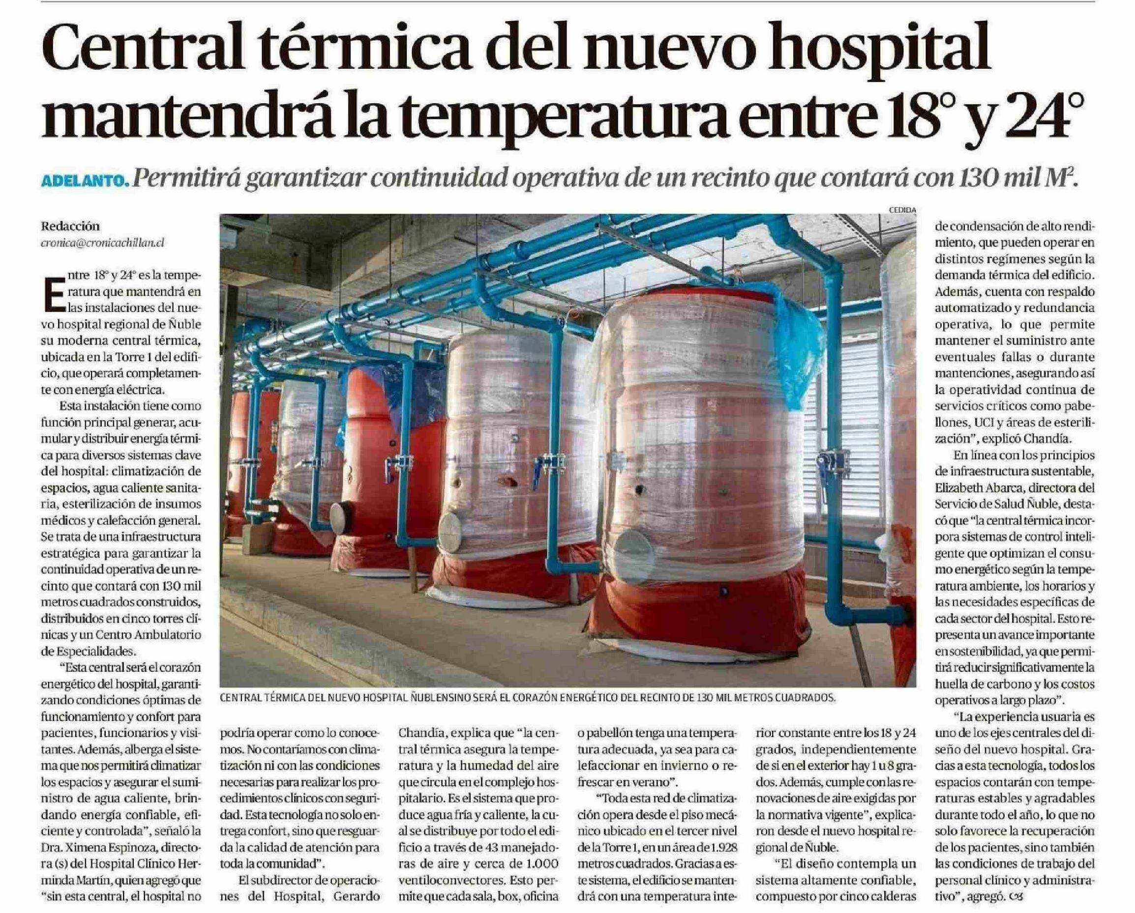 Central térmica del nuevo hospital mantendrá la temperatura entre 18" y 24