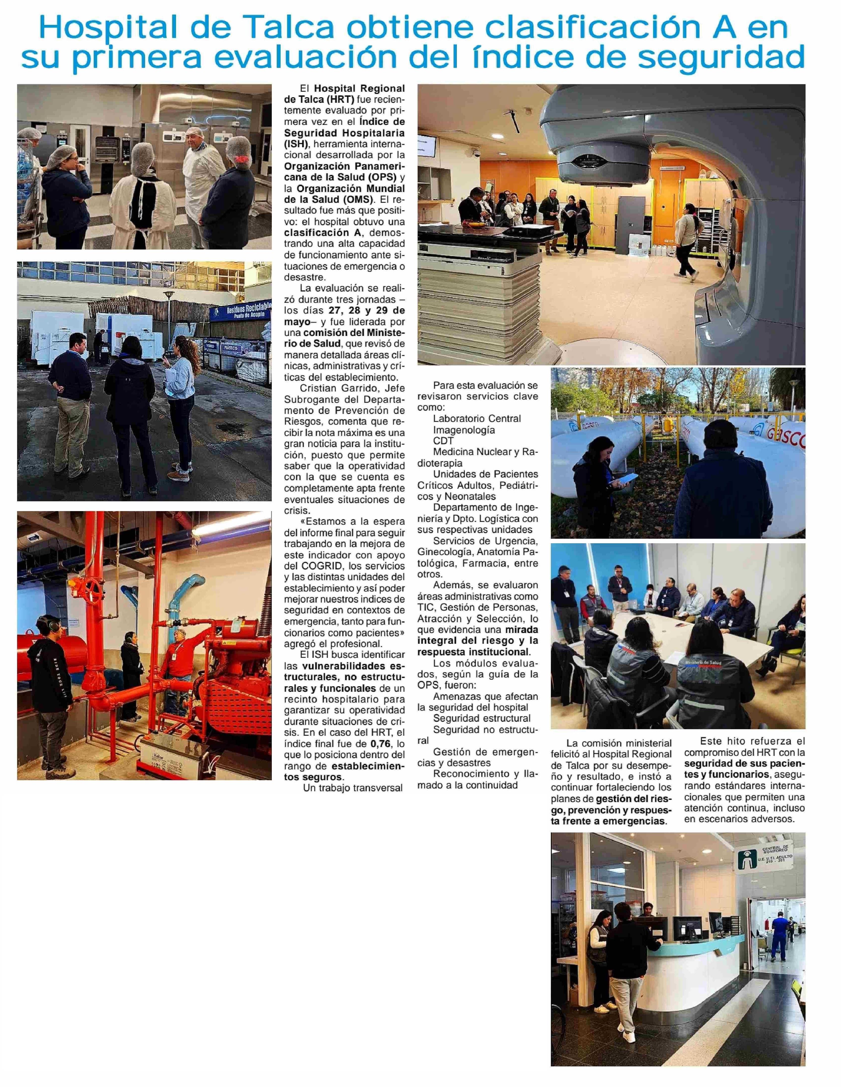 Hospital de Talca obtiene clasificación A en su primera evaluación del Índice de seguridad