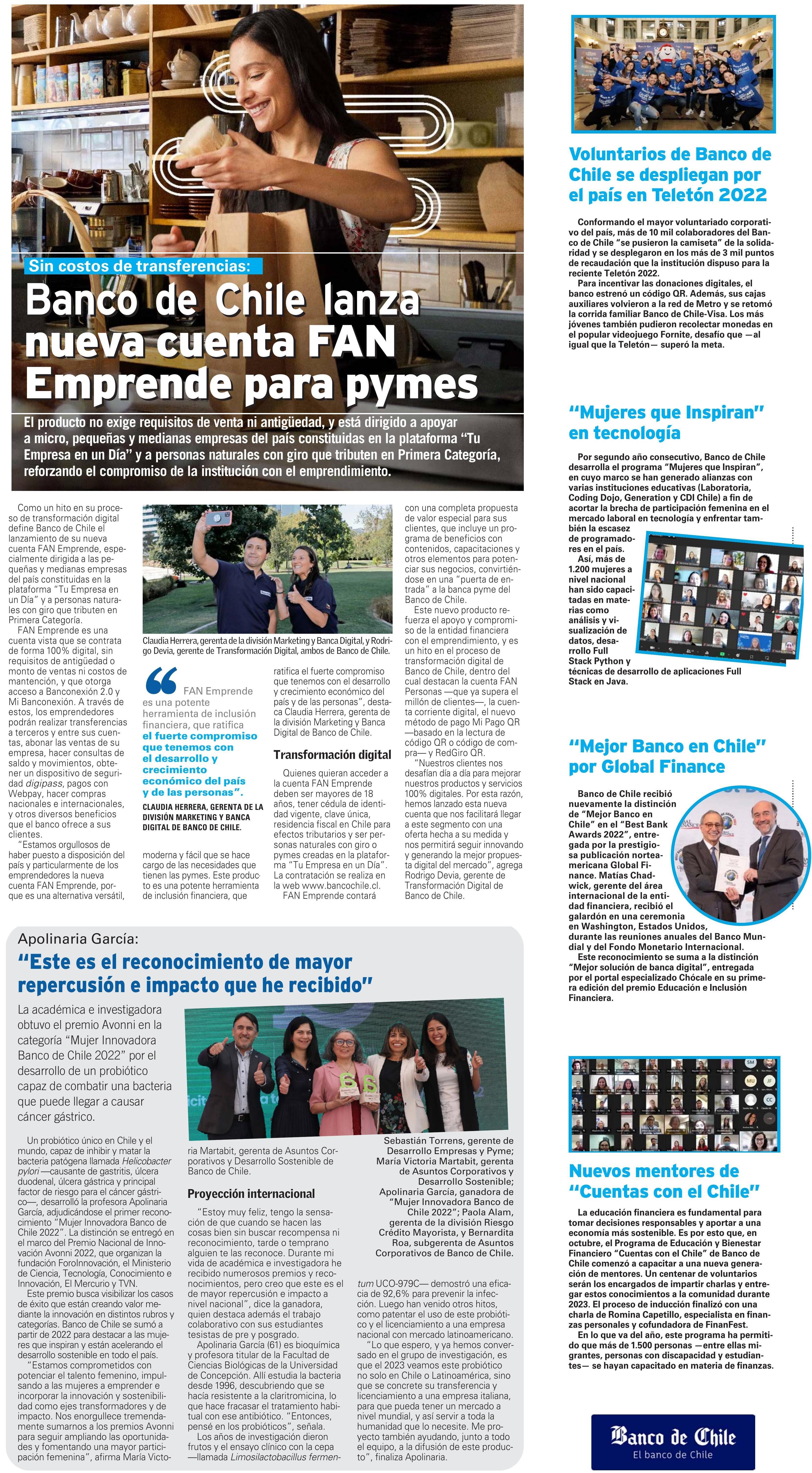 Banco de Chile lanza nueva cuenta FAN Emprende para pymes