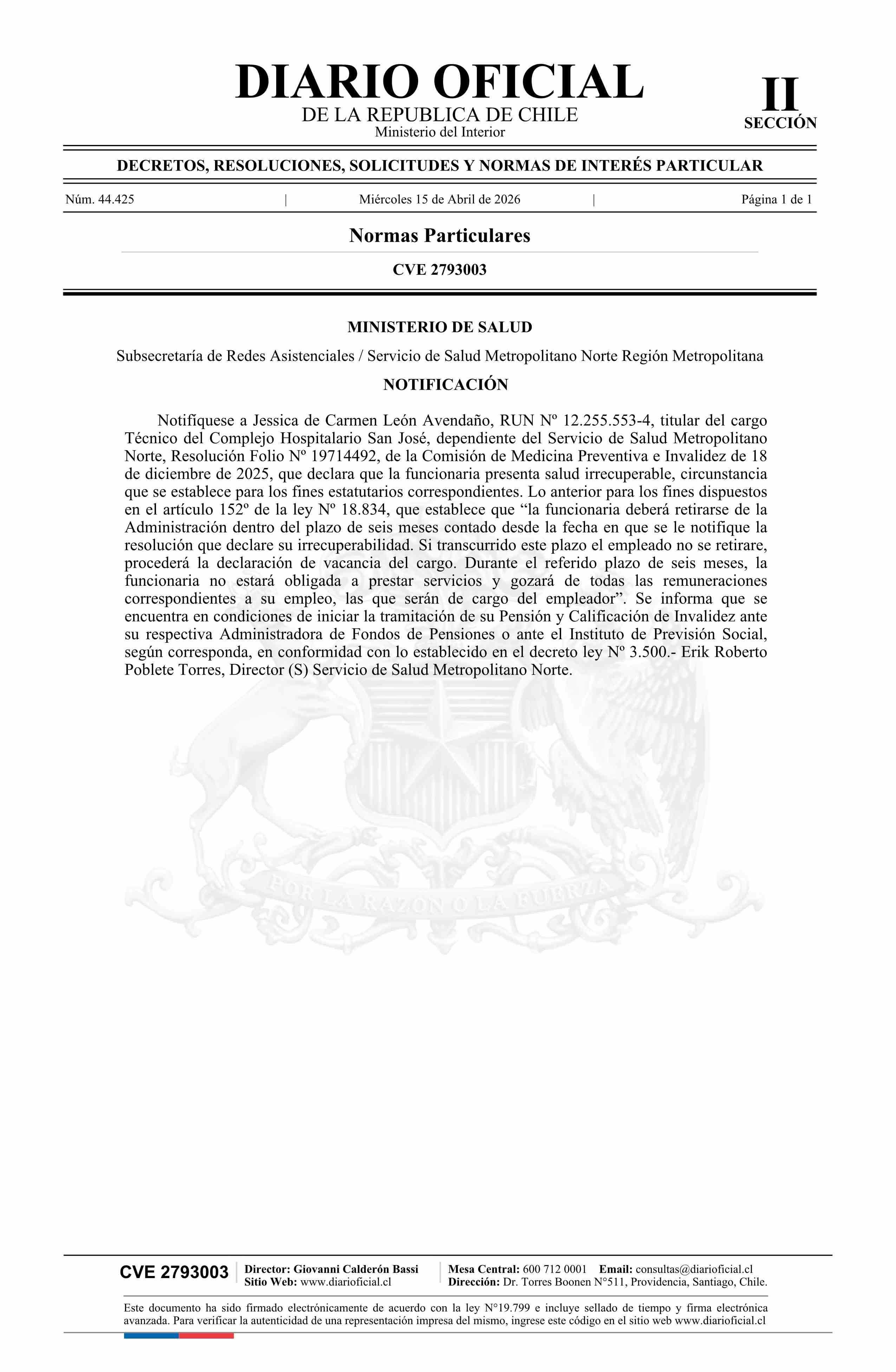 Fuente: Diario Oficial Edición Electrónica (Diario Oficial de Chile - 2 Normas Particulares) Página(s): 436