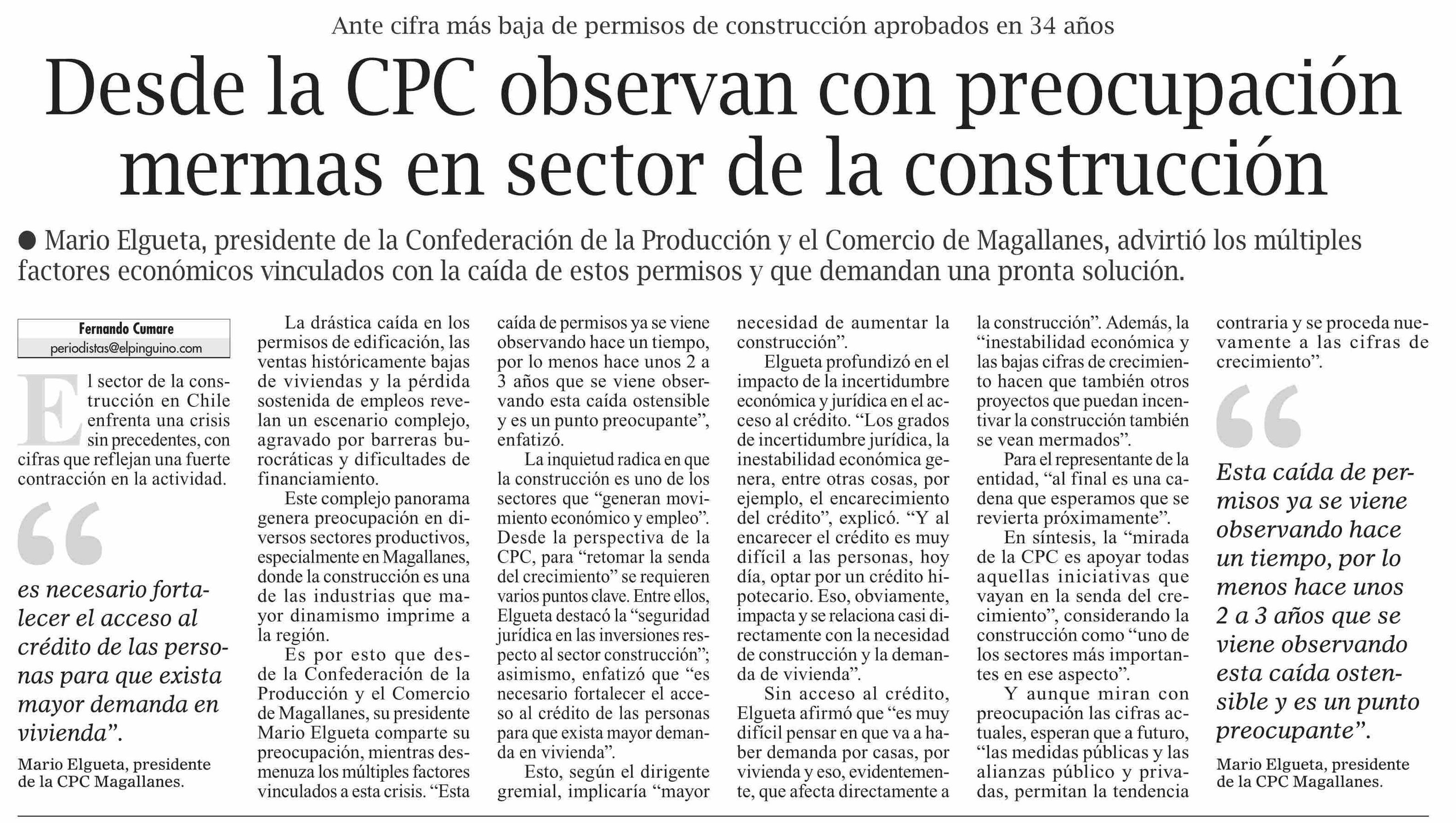 Desde la CPC observan con preocupación mermas en sector de la construcción