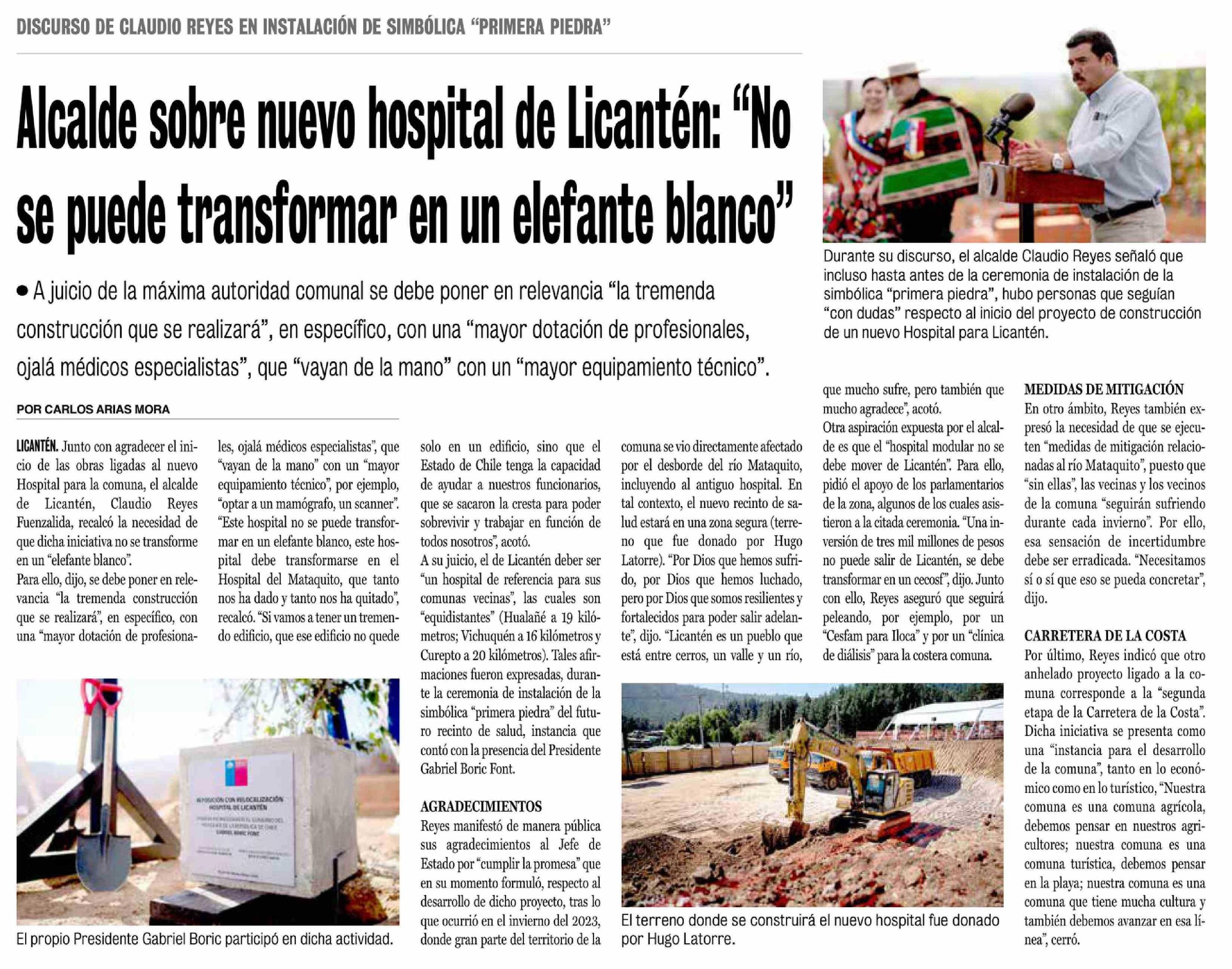 Alcalde sobre nuevo hospital de Licantén: "No se puede transformar en un elefante blanco"