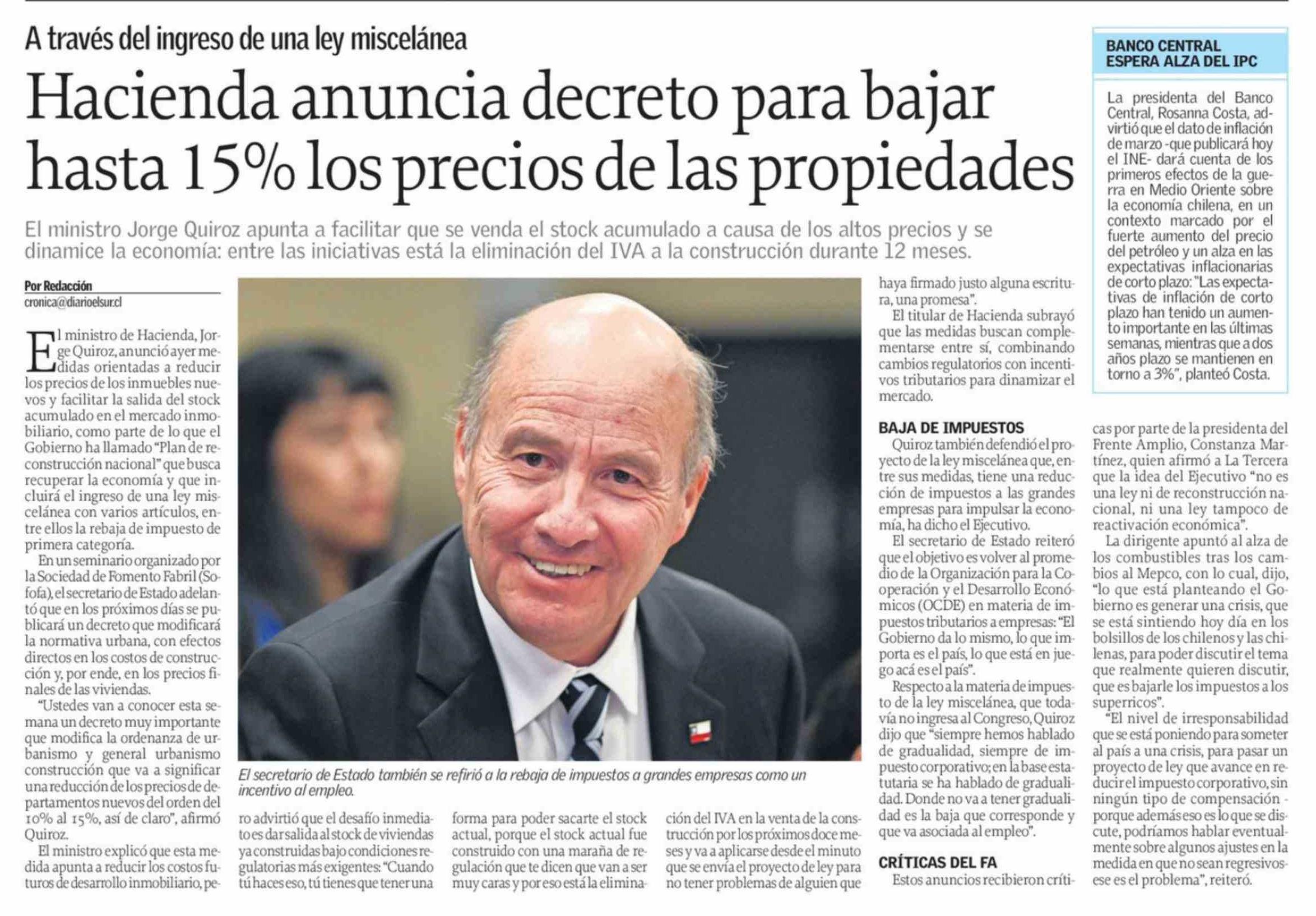 Hacienda anuncia decreto para bajar hasta 15% los precios de las propiedades