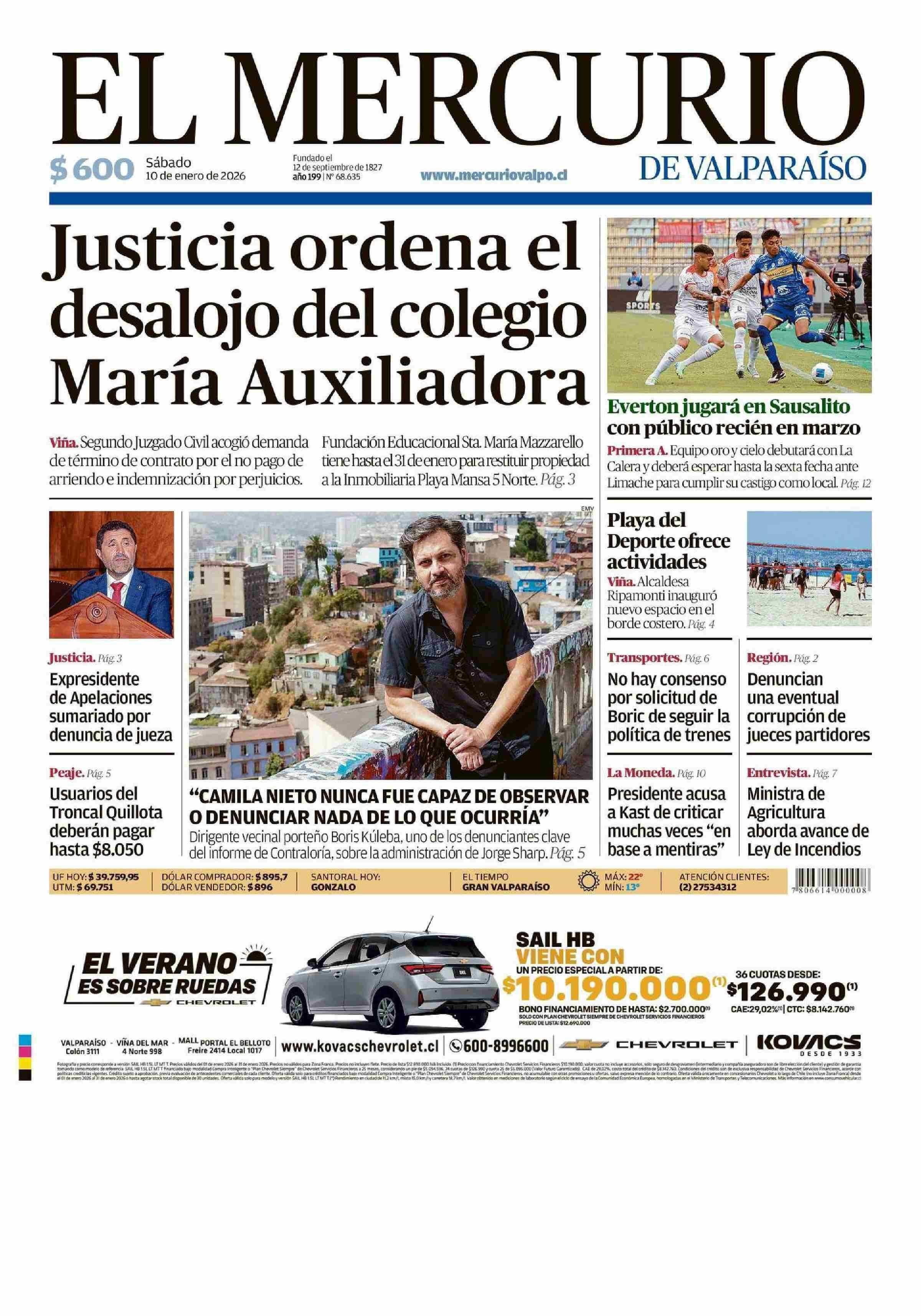 PORTADA EL MERCURIO DE VALPARAÍSO CHILE