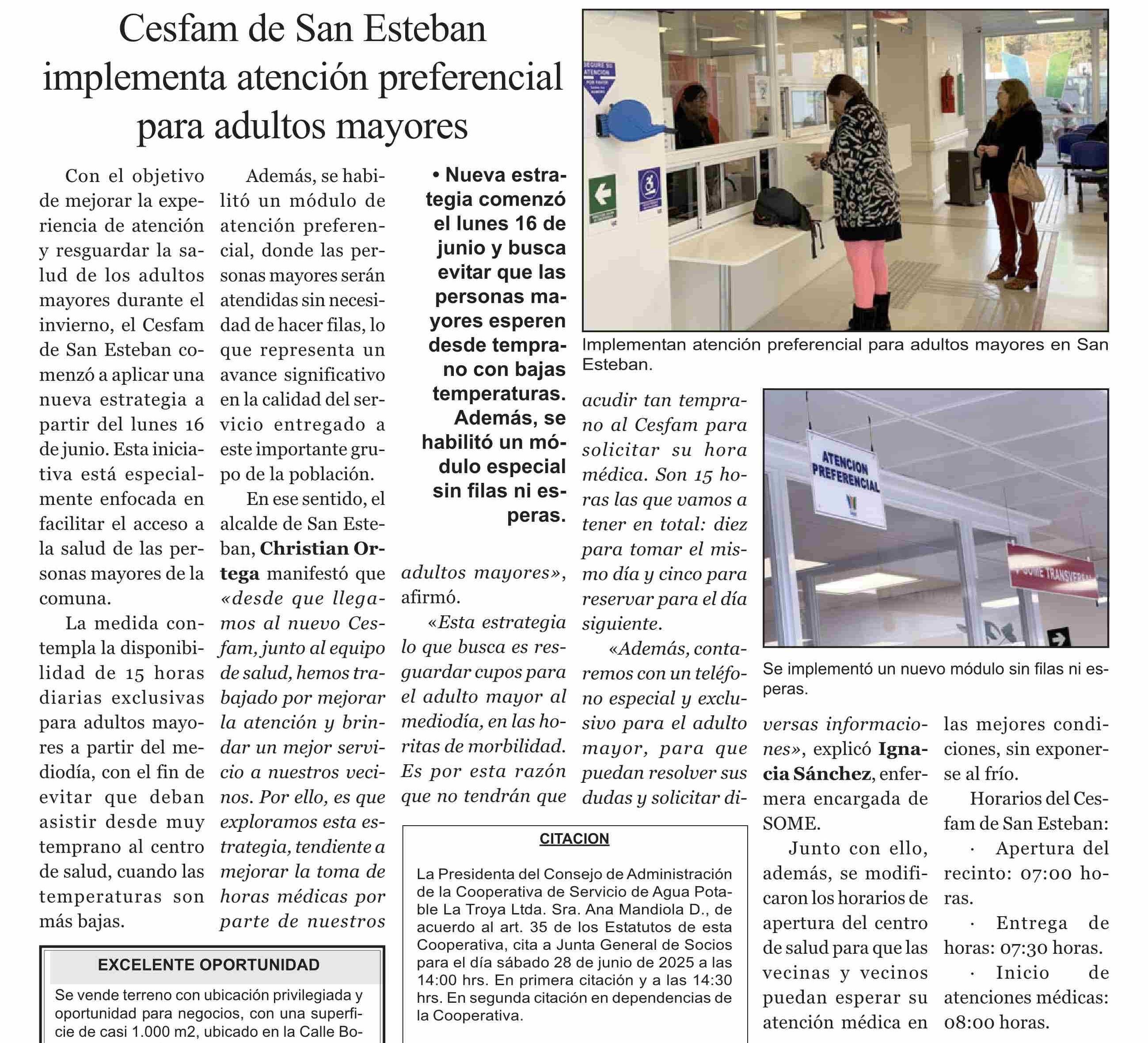 Cesfam de San Esteban implementa atención preferencial para adultos mayores
