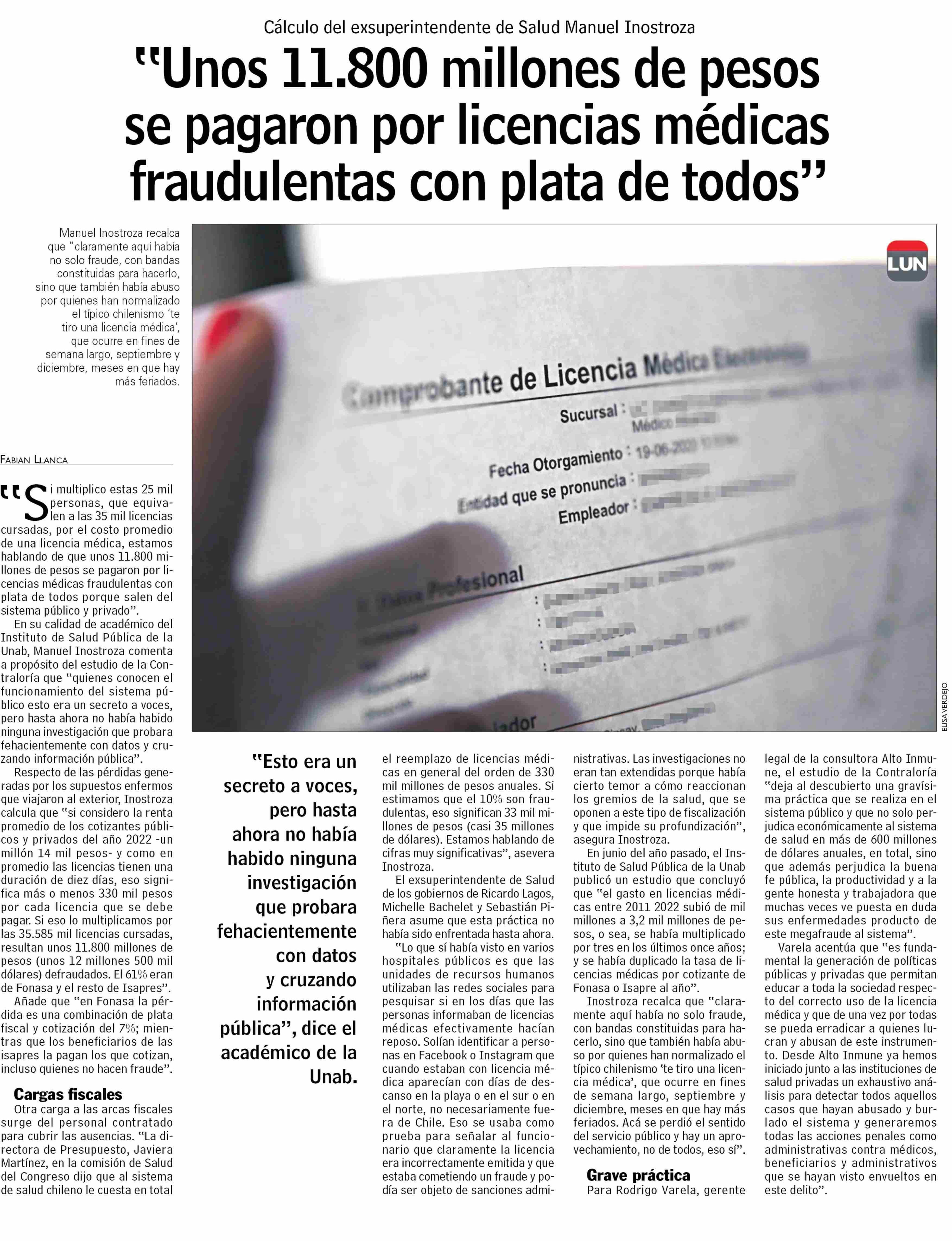 "Unos 11.800 millones de pesos se pagaron por licencias médicas fraudulentas con plata de todos"