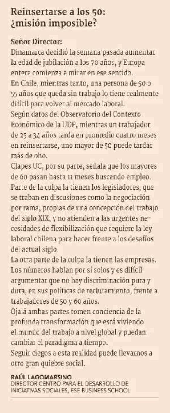 CARTAS: Reinsertarse a los 50: ¿misión imposible?