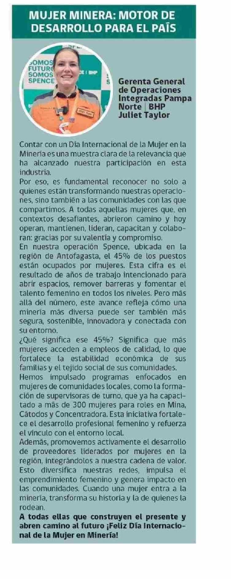 MUJER MINERA: MOTOR DE DESARROLLO PARA EL PAÍS