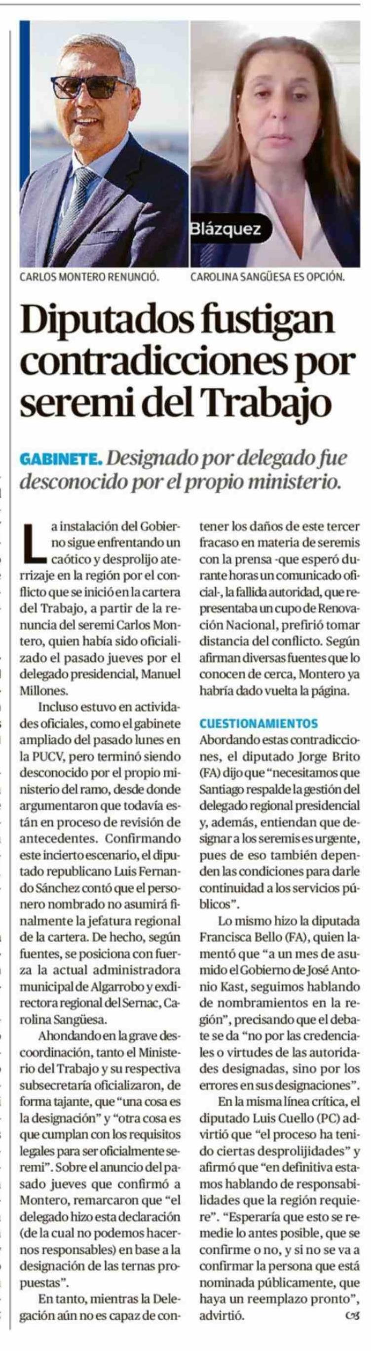 Diputados fustigan contradicciones por seremi del Trabajo